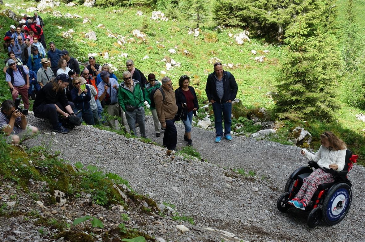 Der stotzigste Teil unmittelbar unterhalb der Mittelstation Chrindi Richtung Hinterstockensee wurde auf einer guten Rollstuhlbreite asphaltiert. So machte es der 13-jährigen «Testfahrerin» Marlène Thomi grossen Spass, den Weg mit dem geländegängigen Rollstuhl offiziell einzuweihen. «Heute eröffnen wir den ersten Verleihservice für den geländegängigen Rollstuhl der Schweiz; das ist ein USP! Der Rollstuhl mit dem Namen «Mountain Drive no Limits Stockhorn» kann ab sofort bei der Mittelstation Chrindi gemietet werden und ermöglicht Menschen mit einer Gehbehinderung oder im Rollstuhl, ein Teil der Landschaft zu werden und den rund stündigen Rundweg unter die Räder zu nehmen», freute sich Dora Andres, Präsidentin des Vereins Freunde des Stockhorns über das gelungene Projekt.