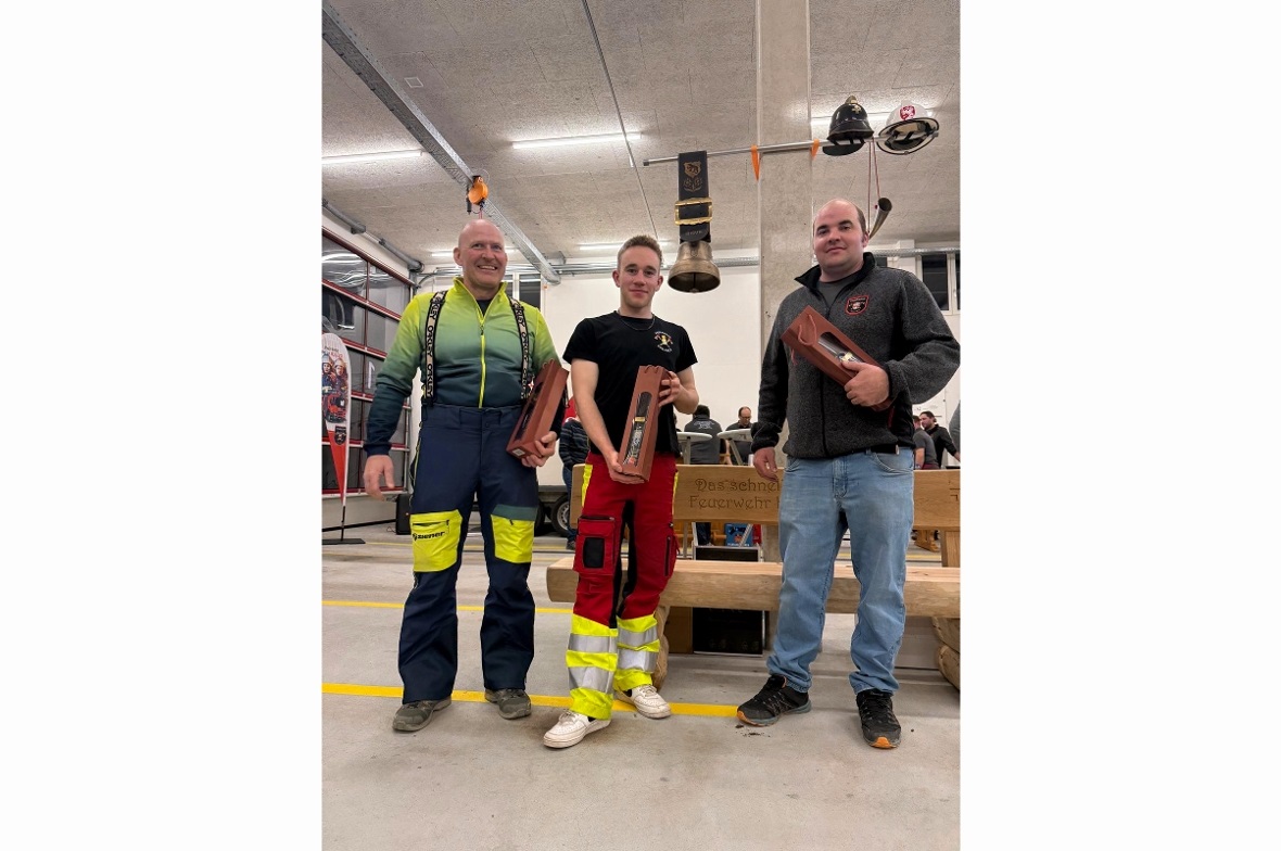Sieger der Hydrantengruppe 117: Links: Martin Josi (1. Platz), nicht am Bild: Roland Haldi (ebenfalls 1. Platz) Rechts: Daniel Michel (3. Platz).