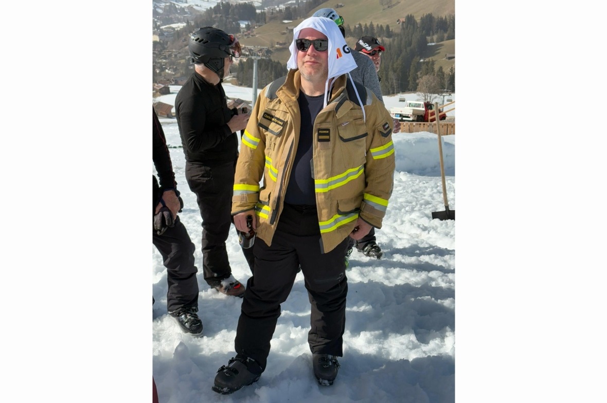 Beat Mösching (Feuerwehr Saanen) gut gelaunt vor dem Rennen.