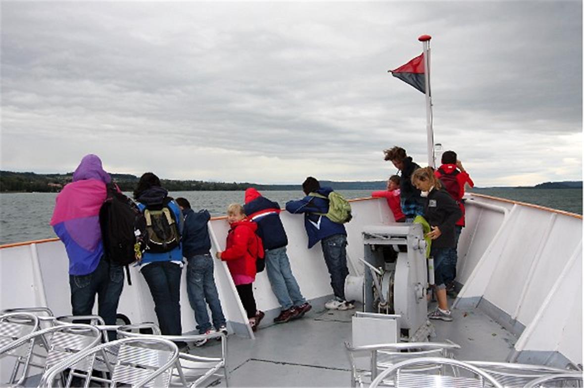 Am Mittwoch gingen wir Schiff fahren. Von Biel bis nach Erlach, da vergnügten wir uns auf dem Camping-Spielplatz. Es hatte eine Riesenrutschbahn. Ich spielte mit Markus Fussball. Nachher mussten wir aufs Schiff. Roman