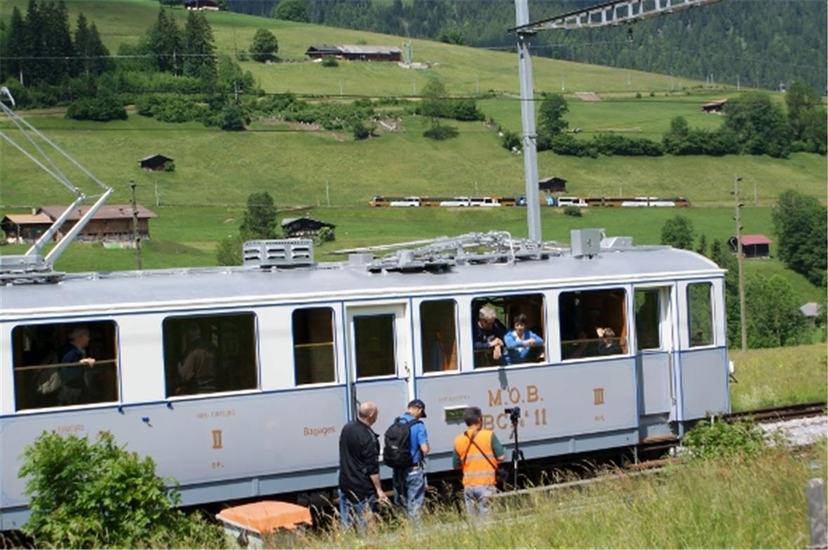 Am Samstag und am Sonntag kamen Festfreudige und Bahnromantiker auf ihre Rechnung. Hunderte genossen in Nostalgiezügen oder mit der Postkutsche die gemütliche Fahrt durchs Obersimmental. Beliebtestes Sujet der zahlreichen aus der Schweiz und aus dem Ausland angereisten Bahn-Fotografen war das Prunkstück der Chamby-Blonay-Bahn, gezogen von einer mit Zahnrädern ausgerüsteten Dampflok der Furka-Oberalp-Bahn. Viel Interesse erweckte die herausgeputzte Triebwagen-Komposition Nummer 11 von 1905. Grosse Beachtung fand auch das Besichtigungs-Angebot in St. Stephan (Güterwagen) und vor allem in Zweisimmen wo sich MOB- und BLS-Kompositionen aus allen Epochen ein Stelldichein gaben und wo auch die technischen Aspekte nicht zu kurz kamen.(Depotbesichtigung, TransGoldenPass-Projekt, Umspuranlage, usw.). Extra aus Stuttgart angereist war einer der vielen Bahn-Fans: Für mich ist die MOB ein Prunkstück in der Schweizer Bahnlandschaft.