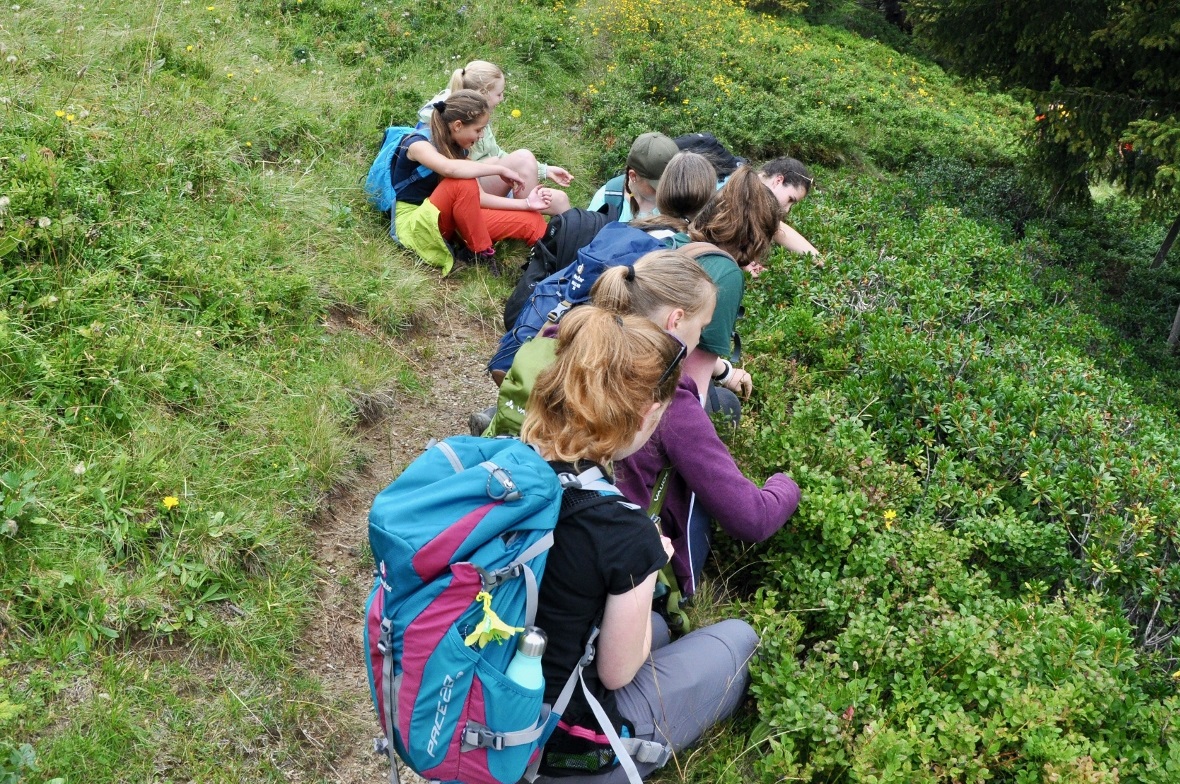 Auf den Spuren des «Bruchmandli» entdeckten die Schülerinnen und Schüler das Zuhause des dort ansässigen Wichtels. Selbstverständlich, durften alle auch in seinem wunderschönen Garten die prächtigen Heidelbeeren «schnausen» und sich auf seinem Spielplatz austoben. Dass die Heidelbeeren schmeckten, sah man den Kindern nicht nur an den freudigen Gesichtern an, sondern auch an den blau-violetten Zungen.