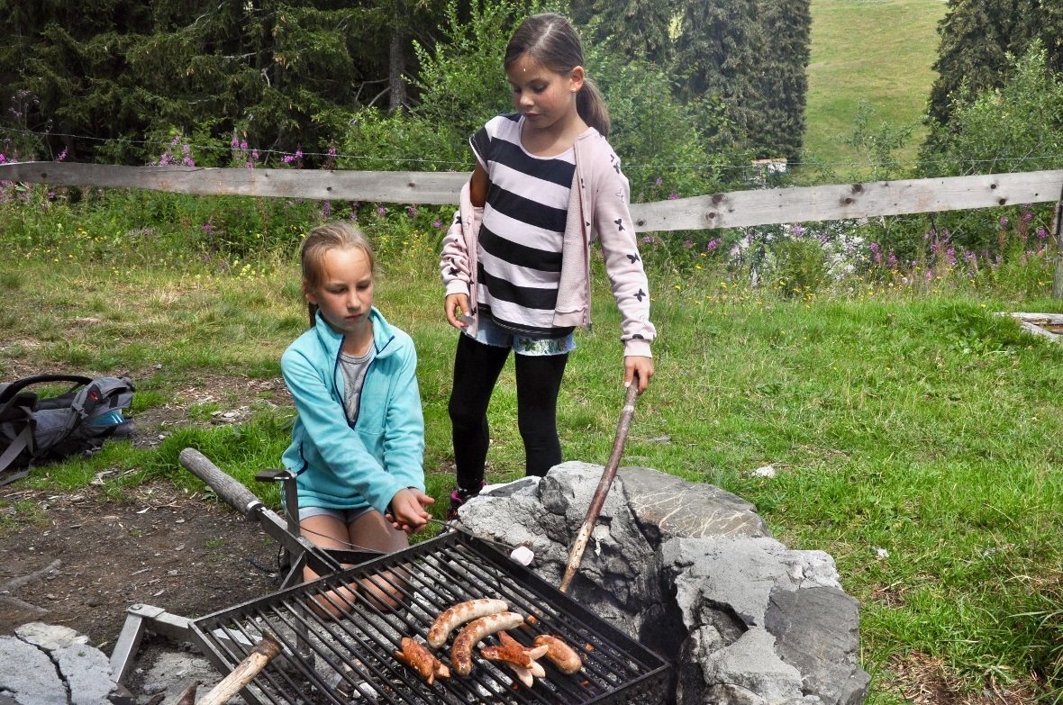 Unterdessen waren die Wanderer der Primarschule und Oberstufe von Reidenbach auch auf dem Bruchmandli-Spielplatz angekommen und stillten ihren Bärenhunger über dem vorbereiteten Grillfeuer.