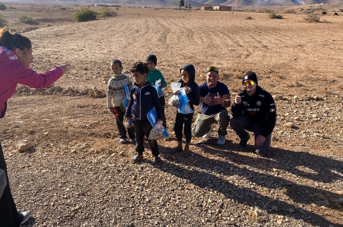 Damit der Staat Marokko die Rallye überhaupt bewilligte, musste sie einen gewissen karitativen Charakter aufweisen. So haben die beiden Simmentaler die kleine «Kiste» bis übers Dach hinaus mit «Secklene» mit Farbstiften, Spielsachen, «Nügglä» und Süssigkeiten vollgepackt, welche unterwegs an Kinder verschenkt wurden. «Zu Beginn fuhren wir viel nebenaus, wo es immer wieder sehr, sehr arme Leute am Strassenrand hatte, die nach Schuhen und Kleidern fragten. Sie ‹plangten› richtig und freuten sich an allem. Wir haben auch die ‹Seckleni› an die Kinder gerne abgegeben – zum einen konnten wir Riesenfreude bereiten – zum andern gab es so immer wieder wertvollen Platz im Panda», schmunzelte Dani rückblickend.