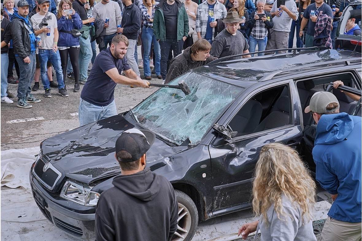 Frontmann Guido stürzte sich waghalsig in die Meute.