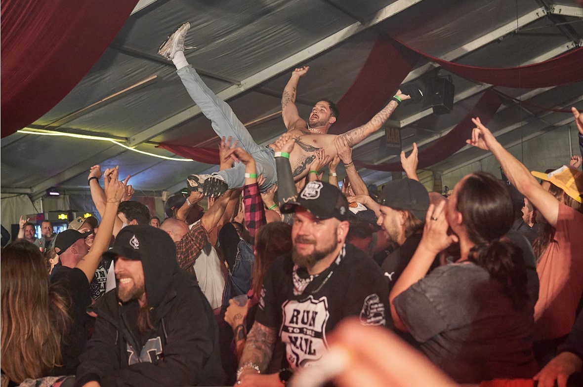Im sehr guten gefüllten Hauptzelt brachten Booze & Glory das Publikum in Partystimmung.