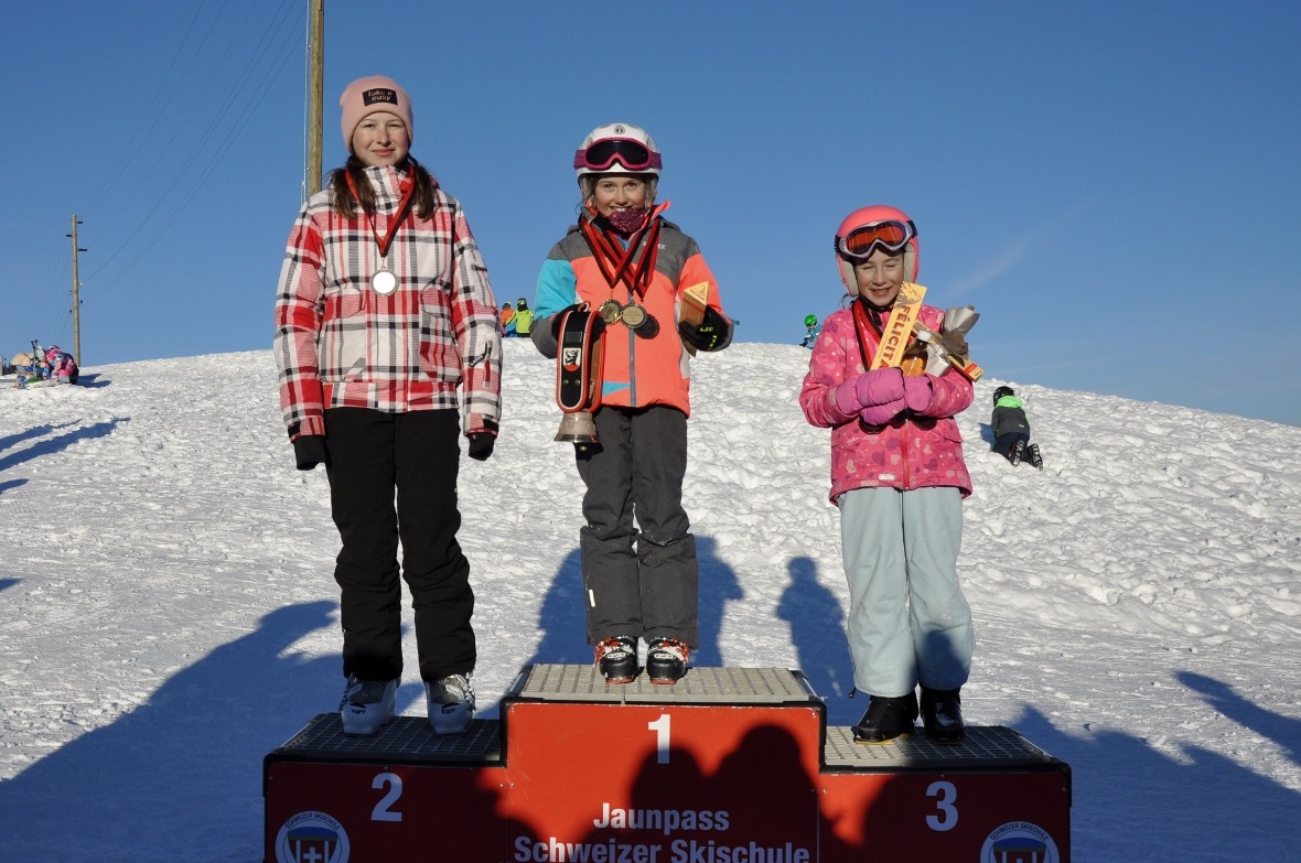 Bereits um 8.40 Uhr ging es los mit der Startnummernausgabe für den Riesenslalom der Grossen. Die Piste wurde extrafrisch präpariert, der Kurs von der Skischule souverän gesteckt. Punkt 10 Uhr schoss die erste Fahrerin aus den Startlöchern. Dann ging es Schlag auf Schlag. Im Minutentakt sausten die Skifahrer am zahlreich erschienen Publikum vorbei. Dazwischen kämpften kurz noch die Snowboarder um ihren Pokal und die Sonne drückte die Nebelschwaden endgültig zurück in die Löcher. Bei den Oberstufenmädchen gewann Natacha Bettler mit der zweitbesten Zeit überhaupt, den Sieg bei den Knaben holte sich Angelo Dänzer. In der 5. und 6. Klasse verwiesen Elin Niederhauser und Roy Dänzer die Konkurrenz auf die hinteren Plätze, bei den 3. und 4. Klässlern gewannen Jana Zeller und Jarne Niederhauser. Und die Snowboarder? Jana Zeller schoss auch hier ihren Gegnern um die Ohren und schwang sich souverän um die Tore und auf den ersten Rang. Bravo!