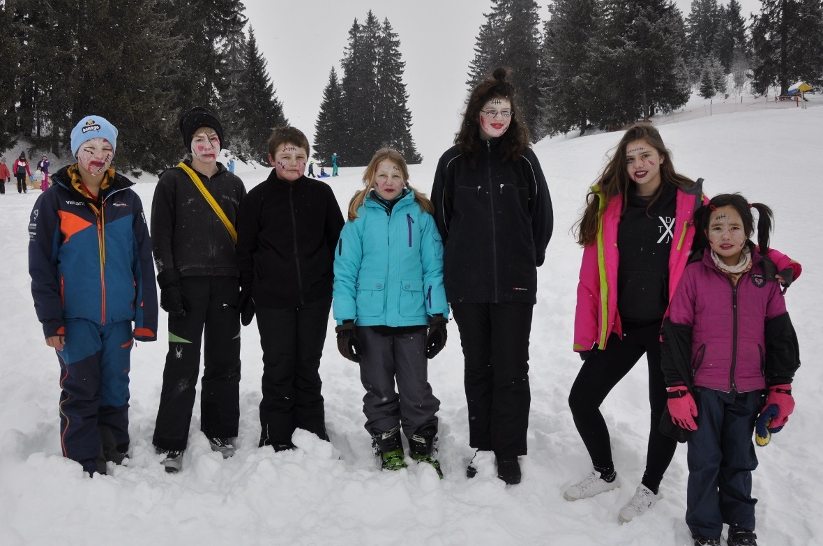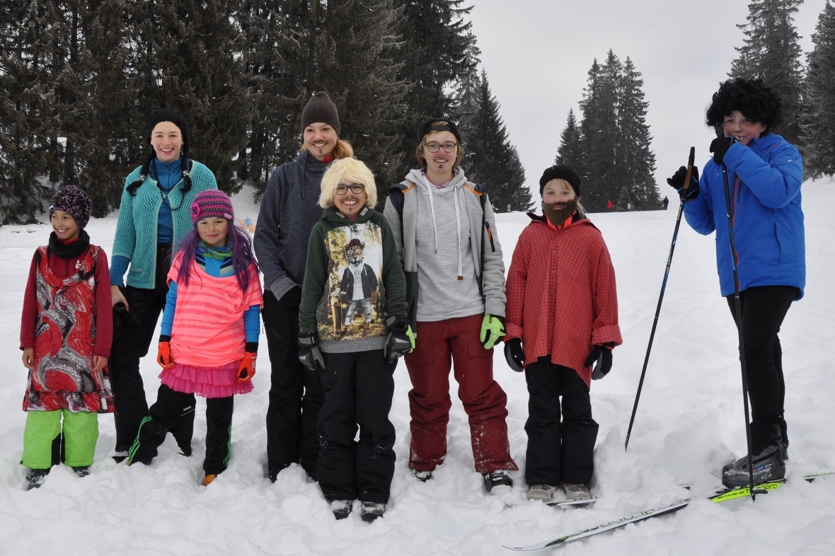 Mitten im gemütlichen Beisammensein staksten plötzlich allerhand lustige Gestalten durch den Schnee, um sich für das legendäre Muggestutzrennen bereit zu machen. Adrette Samichläuse kämpften auf der Loipe gegen «gfürchige» Vampire, maskuline Weiblein und feminine Männlein, krasse Gangster, quirlige Hippies und sonstige «Abnormale». Und ihr Effort hatte Erfolg: Knapp setzten sie sich vor der harten Konkurrenz durch. Eigentlich. Die Lehrpersonen konnten es nicht lassen, als Wasserratten selber ein Team zu stellen, hatten ihr privates Material und die nötige Erfahrung um das Rennen souverän für sich zu entscheiden.