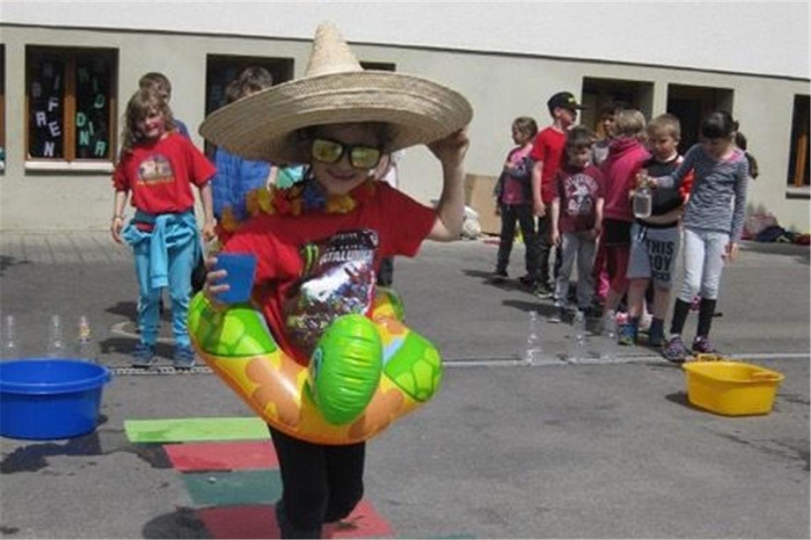 Nach dem feinen, vom Frauenverein spendierten, Znüni jagt es allen den Schweiss aus beim Fussball- und Hockeyspielen. Als willkommene Abkühlung wird der Tag mit einer Wasserstaffette abgerundet. Nun kann der Sommer kommen, wir sind gerüstet mit Sonnenbrille, Hut und Blumenkranz.