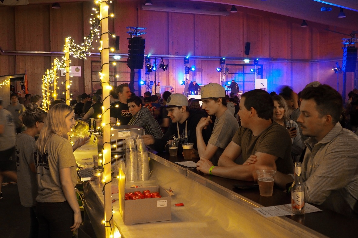 Als es kühler wurde, verlagerte sich die Party in die Halle, wo es bei DJ-Musik und einer langen Bar mit Strafbank weiter ging.