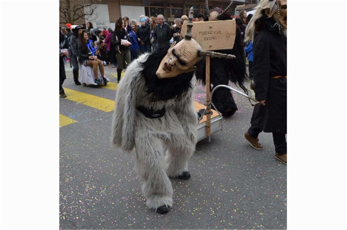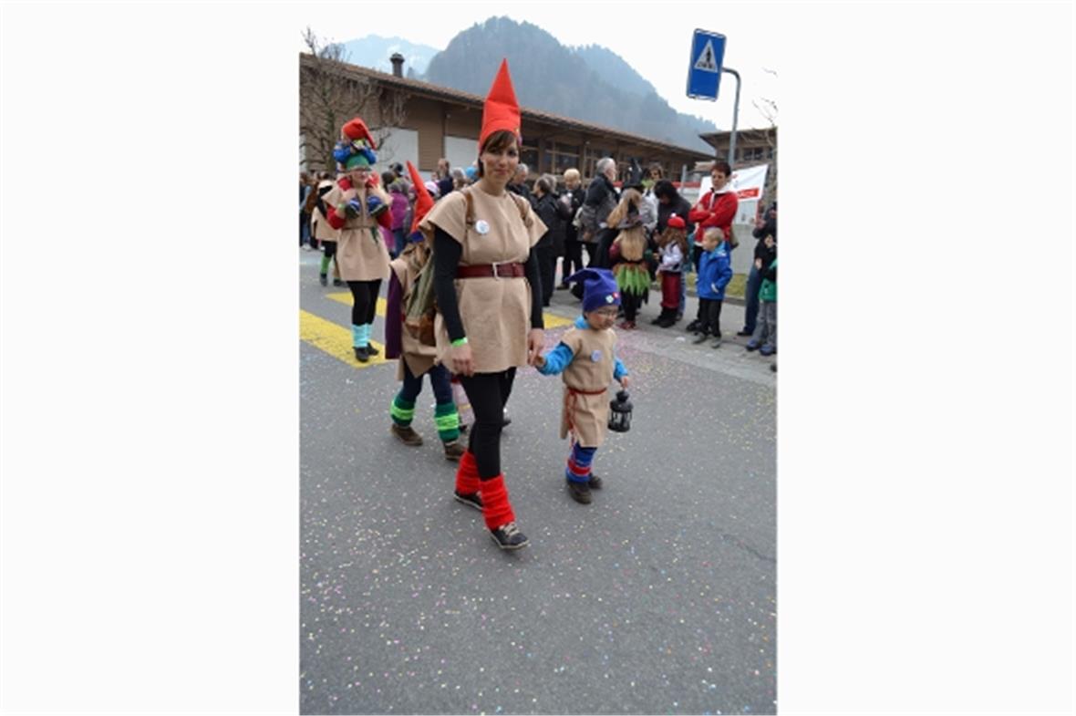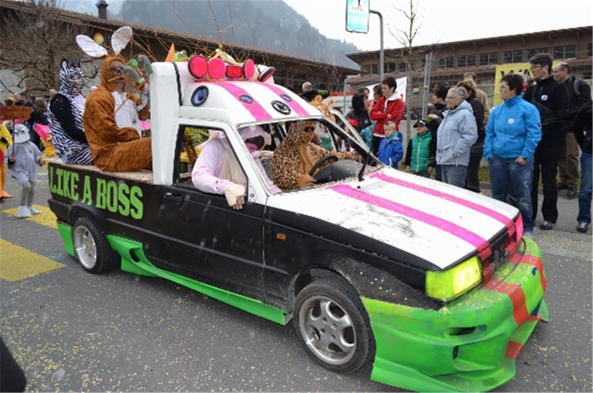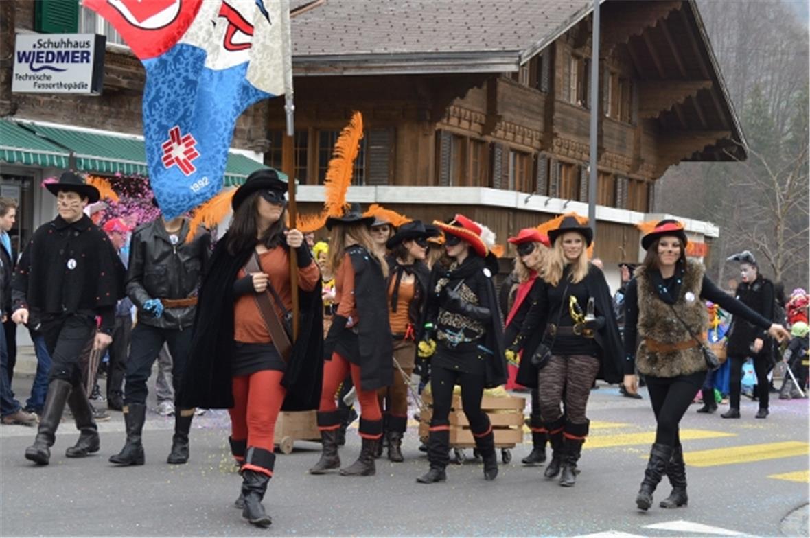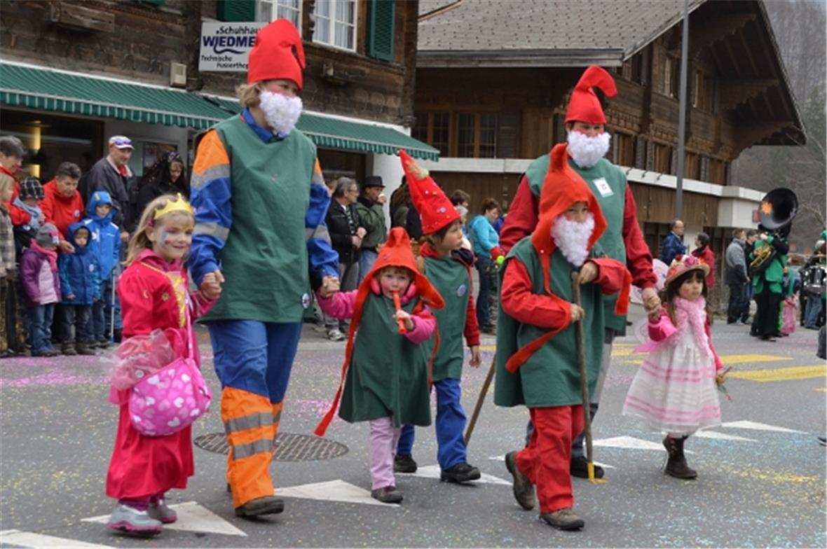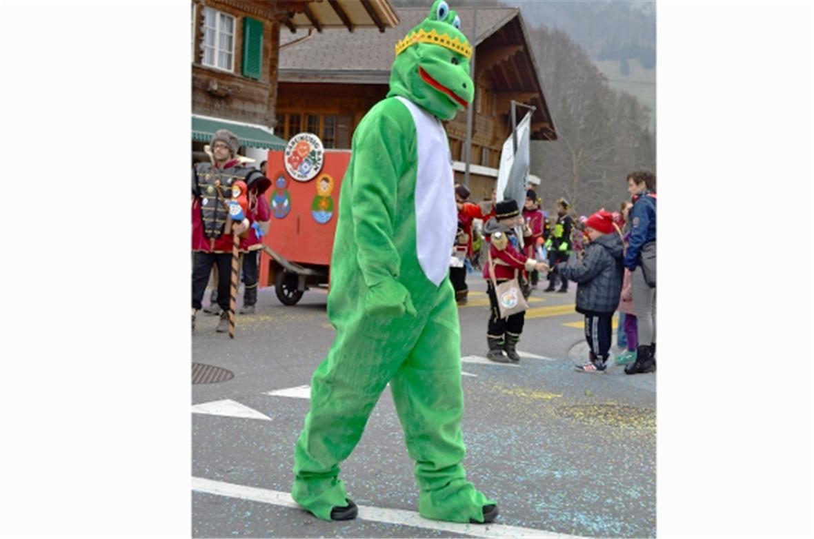 Mit dem lauten knallen der drei Raketen begann der Start zum umfangreichen fröhlichen Umzug durch das Dorf Oey. Angeführt durch die «Trychler Fründe Wimmis» kam das ganze in Bewegung. Bunt gemischt zog der Umzug an den vielen Zuschauer vorbei. Den Schluss machten auch in diesem Jahr die Gugge Bau Band aus Giarnico, mit ihren Schildkröten ähnlichen Gewändern sorgten die für viel Applaus.
