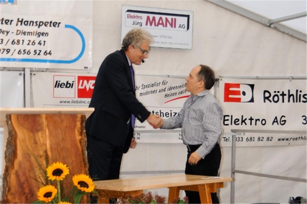 Gastredner Christoph Erb, Direktor der Berner KMU, Burgdorf, war an der Eröffnungsrede der Gewerbeausstellung Oey über das Ausstellungs-Motto «Gewerbe im Naturpark – mittendrin statt nur dabei» sehr erfreut und gratulierte dem anwesenden Gewerbe zu ihrer Leistungsbereitschaft.