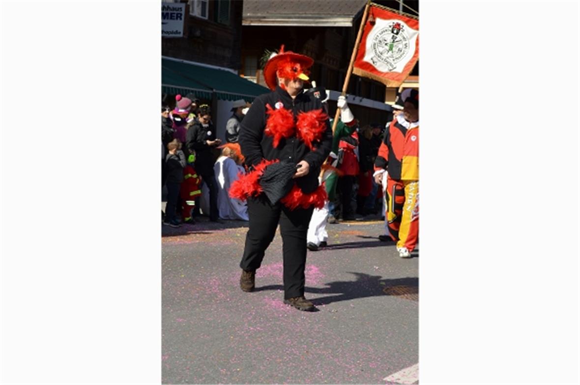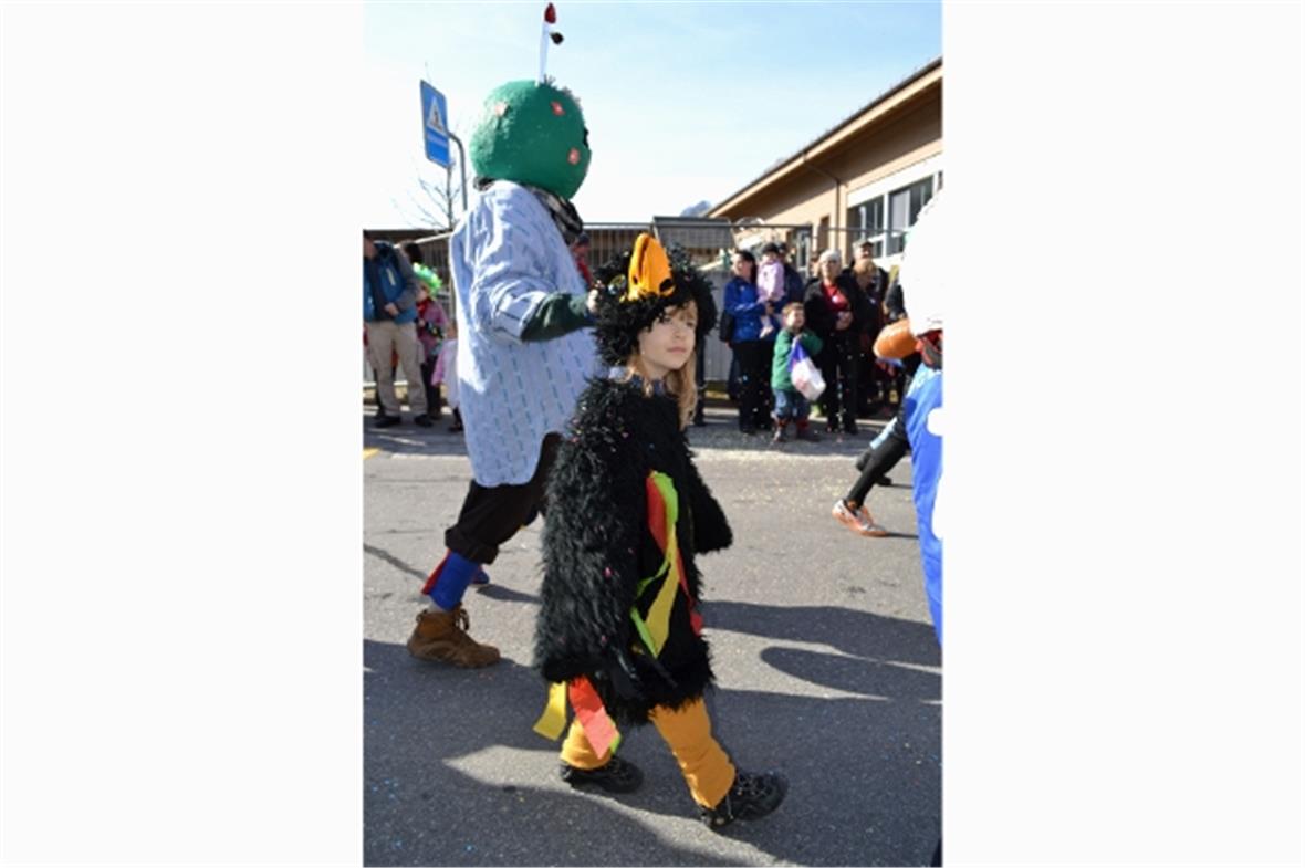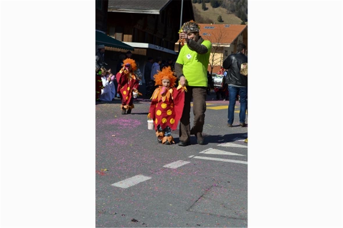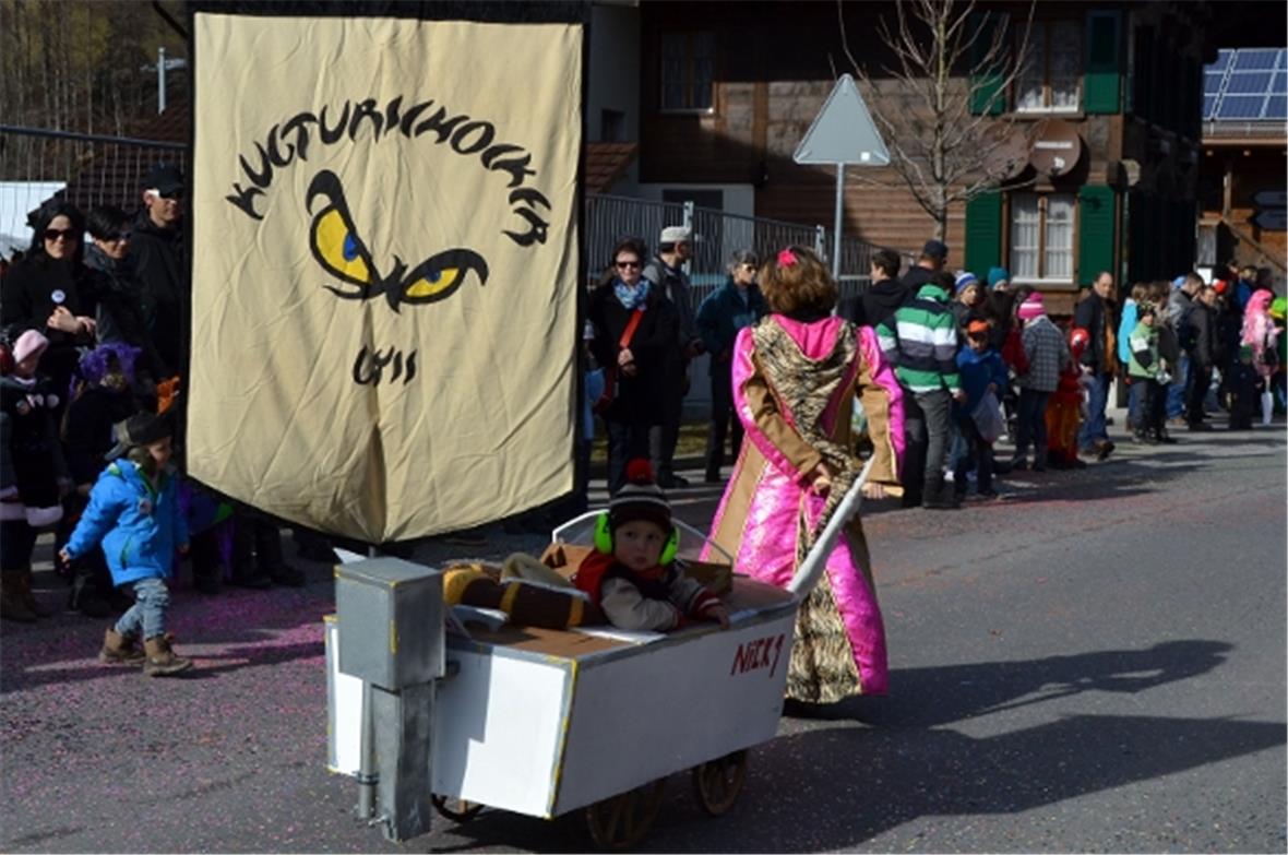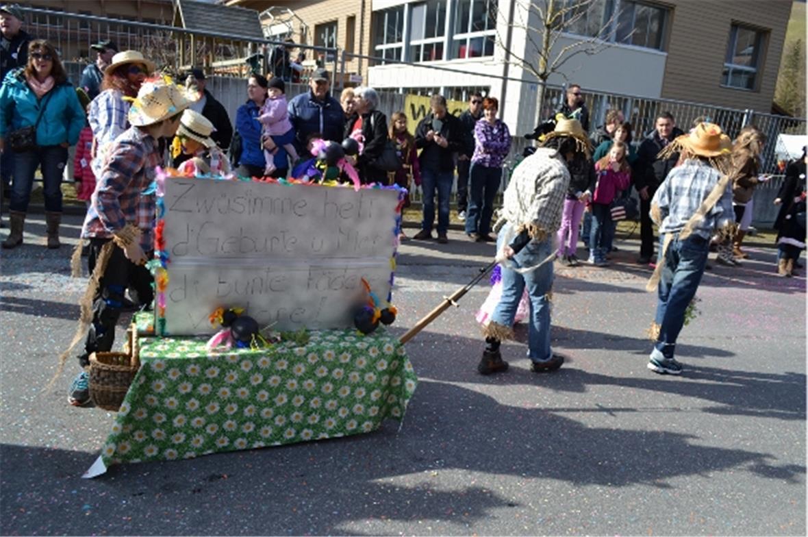 Der Sonnenaufgang am Samstagmorgen versprach erneut ein schönes Fest. Um 13 Uhr begann die Besammlung und Einstellung zum Bahnhof für den Umzug. Tatsächlich war da allerhand von dieser bunten Vogelschau zu sehen. Bemerkenswert die vielen Kinder, die mit grosser Freude mit machten. Genau 14.07 Uhr ertönten die lauten Startschüsse zum Umzug. Die Guggenmusik «Fäderböck aus Koppigen durfte an die Spitze und brachte mit ihrer schwungvollen Darbietung die vielen, vielen Zaungäste durch das ganze Dorf in eine gute Stimmung. Zwischendurch marschierten freie Gruppen, hauptsächlich mit Kindern. Abwechslungsweise immer wieder bekannte Guggen wie die Aubrighäxse aus Vorderthal, die Goldiguuger Goldwil, Notenschletzer Burgdorf und als Abwechslung und gut gekonnt die Hosensacktrümeler.