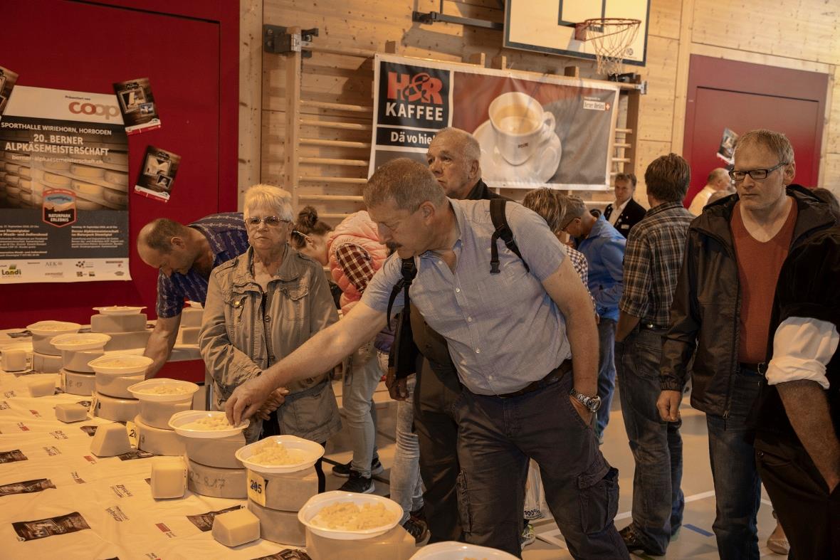 Zahlreiche Alpschaften aus dem ganzen Berner Oberland haben 143 Käse der Jury vorgelegt. Beurteilt wurden die Kategorien «Berner Alpkäse AOP», «Berner Hobelkäse AOP» und «Alp-Mutschli». Die 18-köpfige Jury unter der fachkundigen Leitung von Hans-peter Graf (Leiter Beratung, Inforama Berner Oberland) hatte die anspruchsvolle Aufgabe, die Käse in den vier Kriterien Lochung, Teig, Aroma sowie Äusseres zu beurteilen. Die Unterschiede unter den zehn besten waren minim, was auf eine allgemein hohe Qualität hinweist. «Die Qualität aller drei Kategorien konnte auch dieses Jahr noch verbessert werden und ist auf hohem Niveau stetig steigend. Beim Berner Hobelkäse AOP liessen sich praktisch alle Käse sehr gut hobeln und rollen», resümierte Hans Kohler, Schattenhalb, Präsident von CASALP, mit Stolz. Dieses erfreuliche Resultat ist u.a. auf die gute Ausbildung und Beratung, unter der Leitung von Hanspeter Graf zurückzuführen und gewiss auch auf die Tatsache, dass nur mit konstant hoher Qualität der Extrahartkäse Berner Hobelkäse AOP und der Hartkäse Berner Alpkäse AOP eine Chance auf dem stark umworbenen Käsemarkt haben.