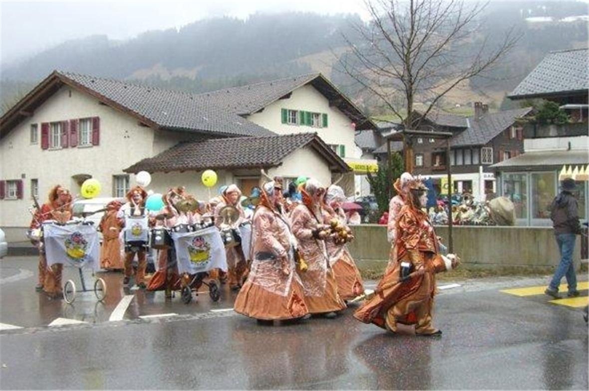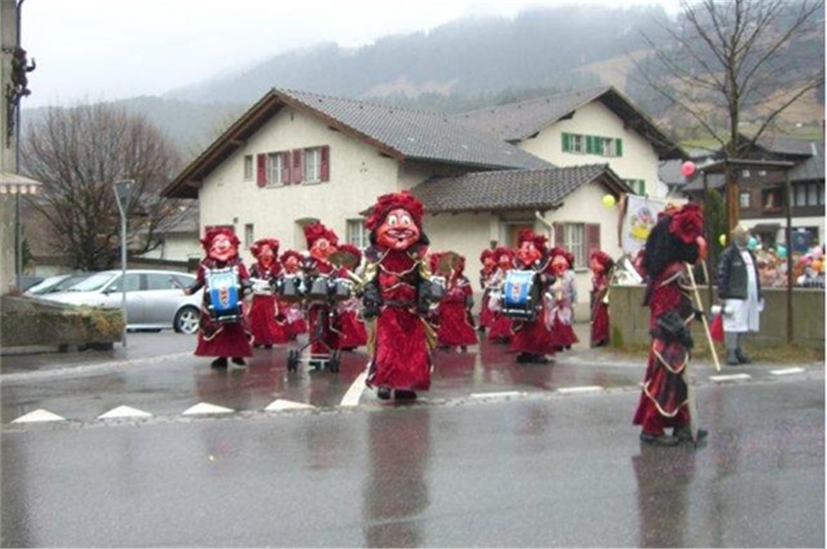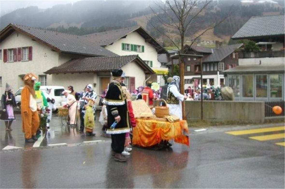 Sehr geschätzt war von den Eltern wiederum die strenge Kontrolle über das Alter und der Konsum von Alkohol. Es zeigte sich, dass gerade die jungen Leute, auch ohne diese Droge lustig sein können. Einzig das Wetter war wenig königlich. Dennoch, erstaunlich wie viele Zuschauer den Strassenrand säumten. Ganz klar zeigte sich, dass gerade die achtzehn «Guggen» ihre gute Laune und Freude am ganzen, mitgebracht haben. Es scheint so, einmal geschminkt und in ihren Kostümen, haben sie nur noch ihre Musik und das lustige Treiben im Blut. Trotz Nässe und Kälte tanzen und bewegen die sich zu ihren Rhytmen, als ob das schönste Wetter wäre. Nach dem Umzug verteilten sich die Leute in die verschiedenen Zelte und zu den Ständen mit reichhaltigen Angeboten. Glühwein und Punsch war angesagt, dazu die fein gebratenen Würste und der Kartoffelsalat.