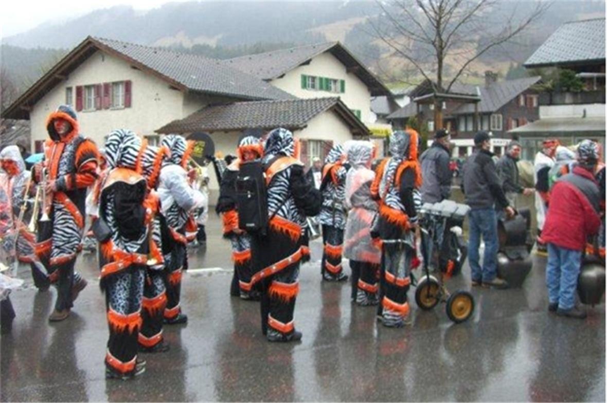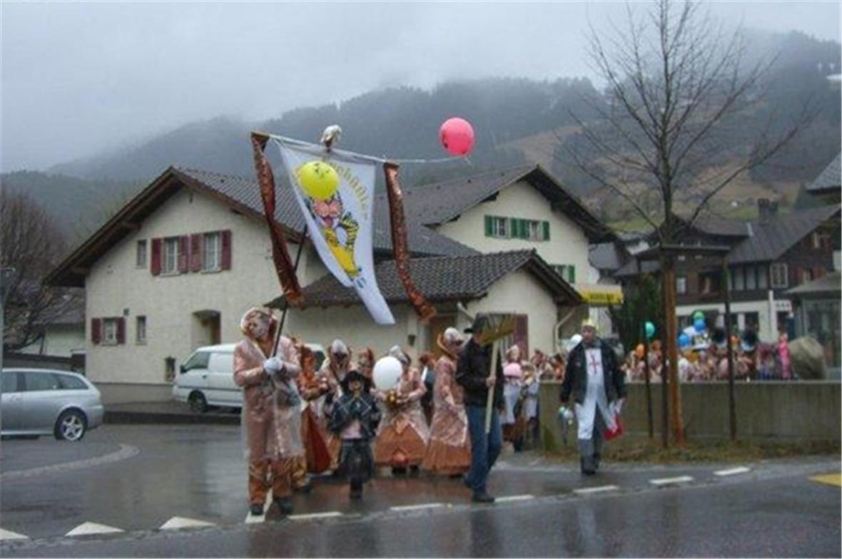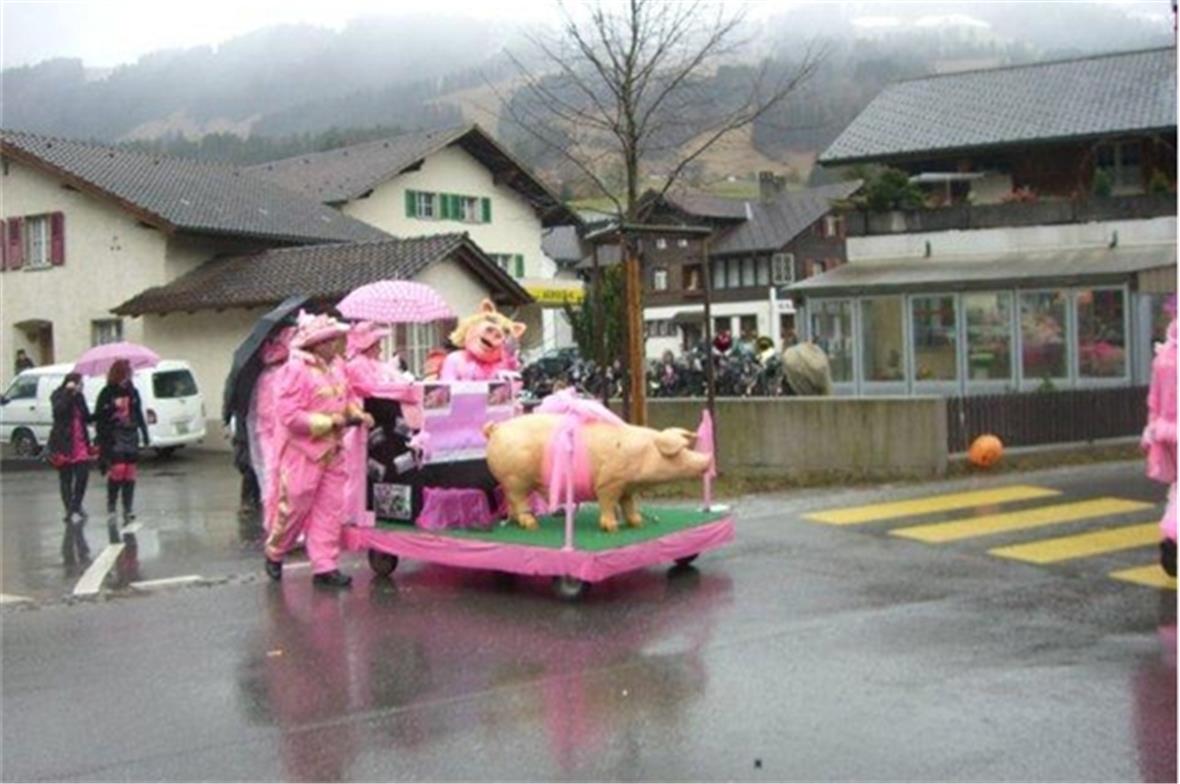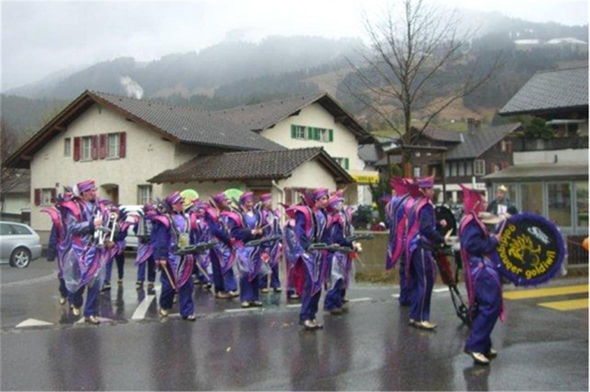Sehr geschätzt war von den Eltern wiederum die strenge Kontrolle über das Alter und der Konsum von Alkohol. Es zeigte sich, dass gerade die jungen Leute, auch ohne diese Droge lustig sein können. Einzig das Wetter war wenig königlich. Dennoch, erstaunlich wie viele Zuschauer den Strassenrand säumten. Ganz klar zeigte sich, dass gerade die achtzehn «Guggen» ihre gute Laune und Freude am ganzen, mitgebracht haben. Es scheint so, einmal geschminkt und in ihren Kostümen, haben sie nur noch ihre Musik und das lustige Treiben im Blut. Trotz Nässe und Kälte tanzen und bewegen die sich zu ihren Rhytmen, als ob das schönste Wetter wäre. Nach dem Umzug verteilten sich die Leute in die verschiedenen Zelte und zu den Ständen mit reichhaltigen Angeboten. Glühwein und Punsch war angesagt, dazu die fein gebratenen Würste und der Kartoffelsalat.