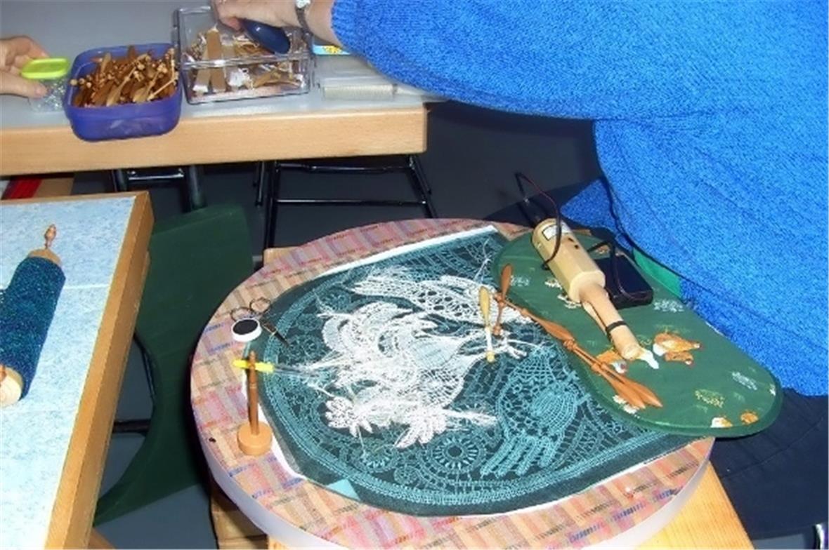 Aber nicht nur Bilder, auch Kunsthandwerke aus Holz, Metall, Steine und vieles andere mehr sind ausgestellt. Man kommt aus dem Staunen nicht heraus. Bei der Schlange, von Heidi Mani auf einen Stein gemalt, wäre ich beinahe davon gesprungen, so echt sah diese aus. Oder die selbst gezogenen Kerzen, in allen Farben und Formen. Sehr interessant auch den Klöpplerinnen bei der Arbeit zuzuschauen und die von Hand gestrickten Sachen, alles wunderschön.