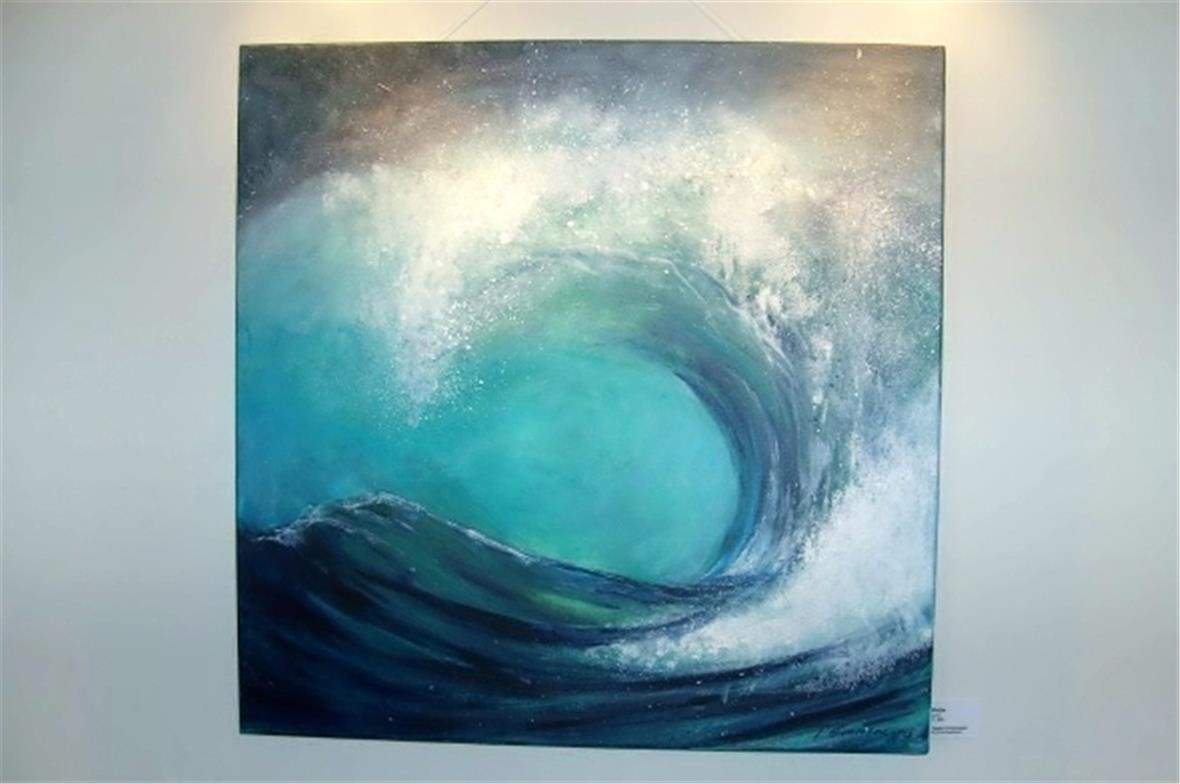 Beim anschliessenden Rundgang kamen die vielen Bilder, vor allem jene von den Diskus-Mitgliedern – die ihre Grundbegriffe alle beim leider verstorbenen Paul Müller gelernt haben – voll zum Zuge. Die bekannte Malerin Silvia von Allmen betreute die Kunstschaffenden. Das Motto war «Wüste und Wasser». Erstaunlich was da alles geboten wurde. So auch das Bild mit der blauen Welle. Wer so malen kann, verdient Beachtung.