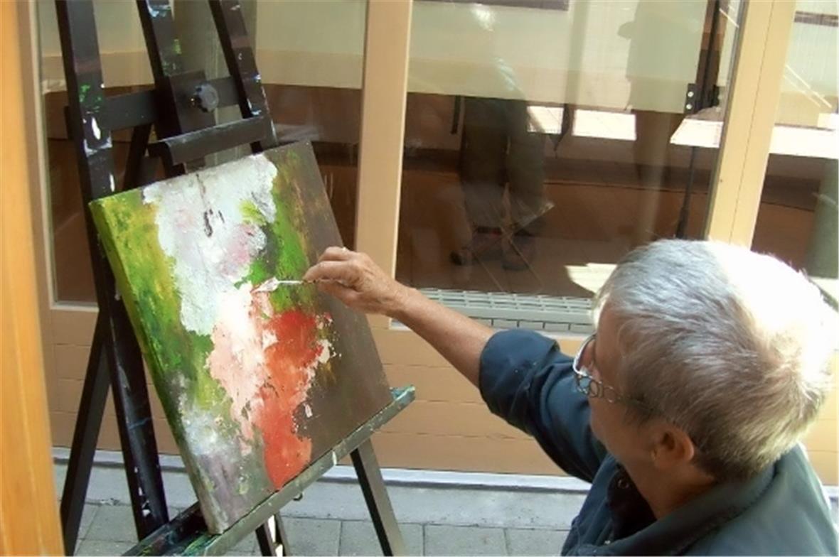 Alle Jahre wieder. Immer wenn die Schulferien begonnen haben, zieht die Gruppe der MalerInnen und KunsthandwerkerInnen in die Mehrzweckhalle Oey ein.