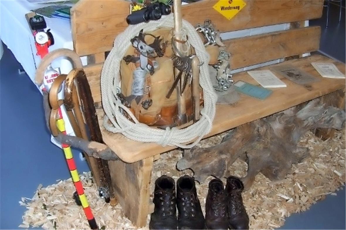 Ganz gut fand ich auch die Reklame des Tourismus-Vereins; erstaunlich mit wie wenig man viel aussagen kann. Die geschnitzten Kühe und Ziegen von Bernhard Carini, Zwischenflüh, sehen sehr echt aus, zum Glück. So schöne Tiere, natürlich reine, nicht abgeänderte Simmentaler. So etwas zu besitzen, da lacht sicher jedem Bub sein Herz. Viel bestaunt wurde auch die Arbeit von Andreas Rösti, alt Tierarzt aus Wimmis. Seine Arbeit auf einem grossen Brett, bestückt mit vielen Intarsien, zeigt eine ganze Lebensgeschichte auf.