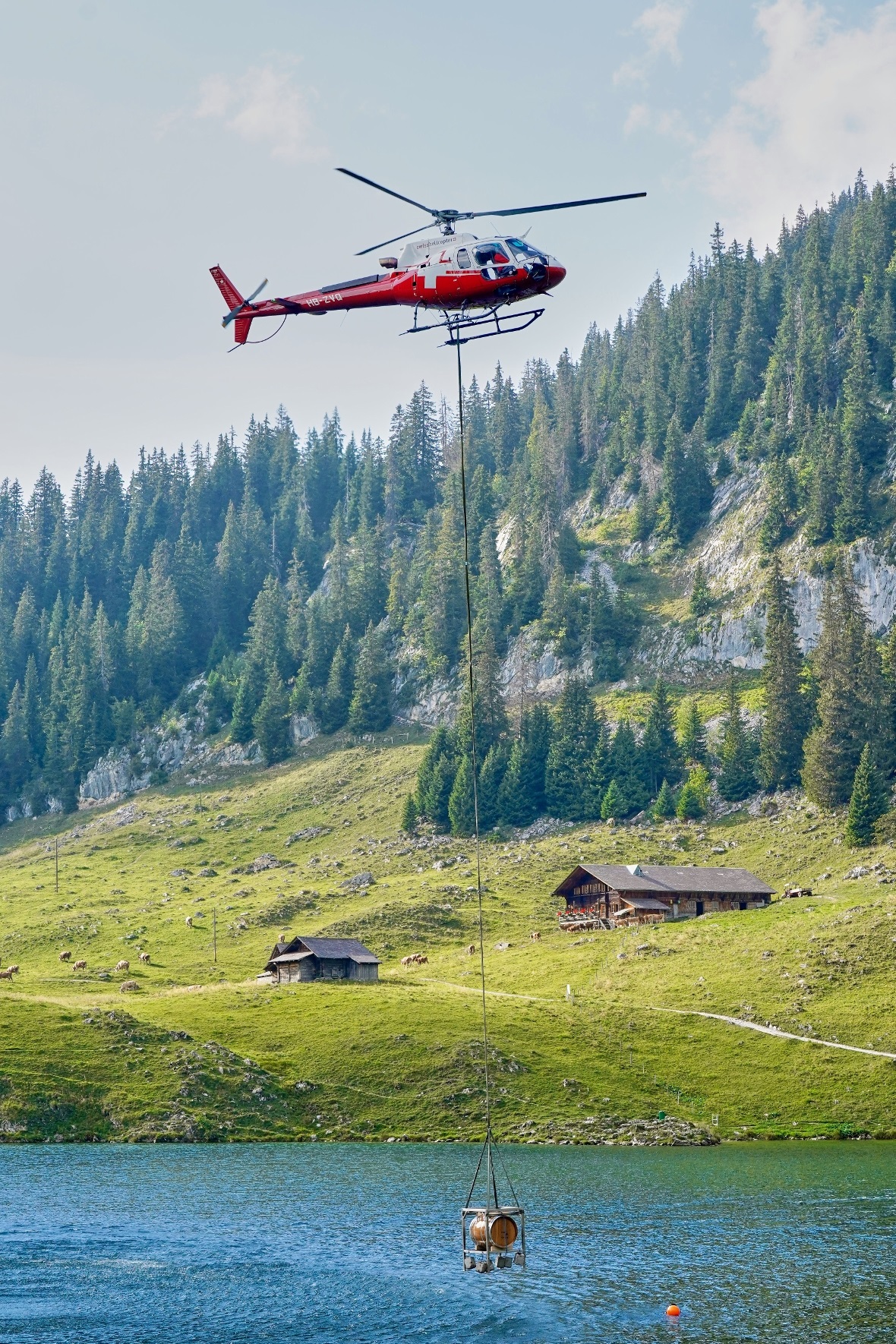 Eine Premiere in der Whisky-Szene: Die Rugenbräu Distillery machte am Dienstag, 12. September 2023 gemeinsame Sache mit der Stockhornbahn und versenkte im Hinterstockensee ein Fass mit Whisky.