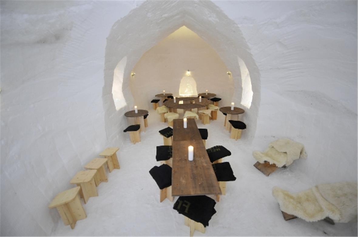 Geschäftsführer Marius Mosimann, der mit seinem Team sowohl das Iglu-Dorf Stockhorn als auch dasjenige auf dem Saanerslochgrat führt, gab die Hintergrundinformationen, wie ein Iglu-Dorf überhaupt entsteht: «Das mehrräumige Event-Iglu liegt in einem eigentlichen Kältesee. Es wurde mit speziellen Ballonen, die mit einer Schneefräse und je etwa hälftig Kunst- und Naturschnee während rund 24 Stunden eingeschneit wurden, in rund dreitägiger Arbeit in der Altjahrswoche erstellt. Das Insel-Iglu wurde in der traditionellen Bauweise mit Schneeblöcken erstellt.» Die in den beiden Räumen des Event-Iglus platzierten eisigen Kunstobjekte hat ein holländischer Eiskünstler zum Thema «Tierwelt am Stockhorn» geschaffen.