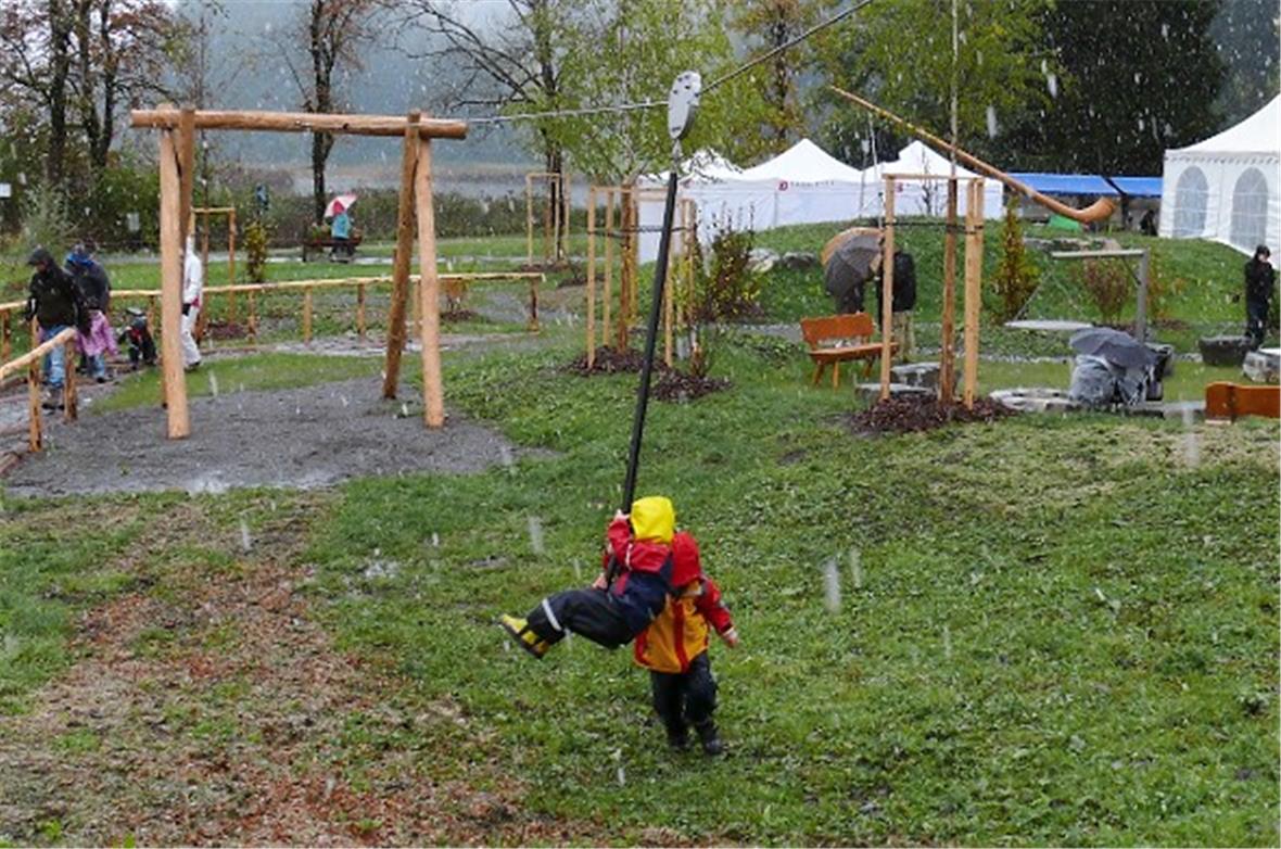 Jeannette und Martin Plattner von der Stiftung Denk an mich sorgten dafür, dass der Spielplatz behindertengerecht gebaut wurde und leisteten einen nahmhaften Beitrag an die Finanzierung.