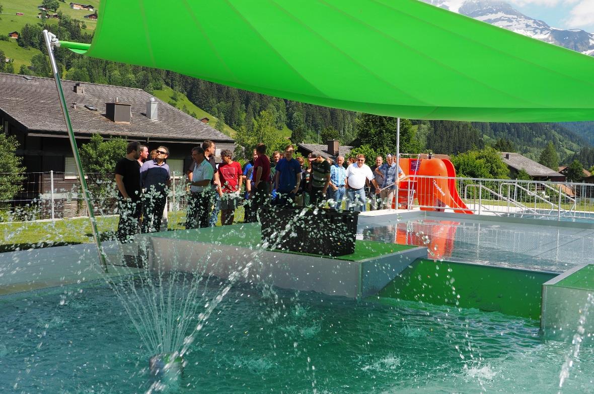 Die offizielle Eröffnung war um 16 Uhr. Verwaltungsratspräsident Mathias Rytz begrüsste die Gäste und erläuterte die wichtigen Elemente des umgebauten Freibades. Das neue, multifunktionale Becken umfasst zwei 50-Meter-Schwimmbahnen, drei 25-Meter-Kurzschwimmbahnen mit dem Aquatrack-Eventmodul, einem grossen Nichtschwimmerbereich mit Wasserfall, Fontänen, Kinderrutschbahn und einem Riesenkrokodil sowie einem grossen Kleinkinderbecken mit Spritzdüsen, Wasserigel und Schrägrutsche. Damit ist für die Gäste der Badespass garantiert.