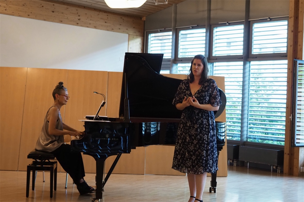 Nach dem sonntäglichen Meisterkurs Gesang mit Leiterin Tanja A. Baumgartner waren sechs Studentinnen und ein Student bereit, aus ihrem vielfältigen Repertoire einige Lieder mit enormer Professionalität vorzutragen. Mit Furore – nämlich der Arie «In furore iustissimae irae»aus der Cantate Nr. 1 von Antonio Vivaldi – begann Mara Möritz. Die sieben jungen Leute begeisterten und liessen in die Welt der Oper und der Operetten eintauchen: von Brahms Zigeunerliedern, über die Arie der Polina von Tchaikowsky bis zu «La fleur que tu m´avais jetée» aus «Carmen» von Georges Bizet. Es war wunderbar anzuhören und eine enorme Leistung bei der grossen Hitze am letzten Sonntag.