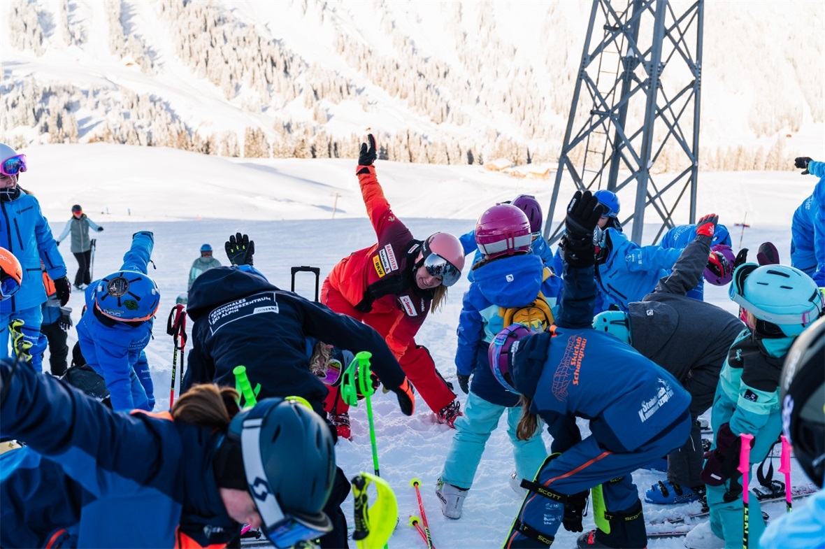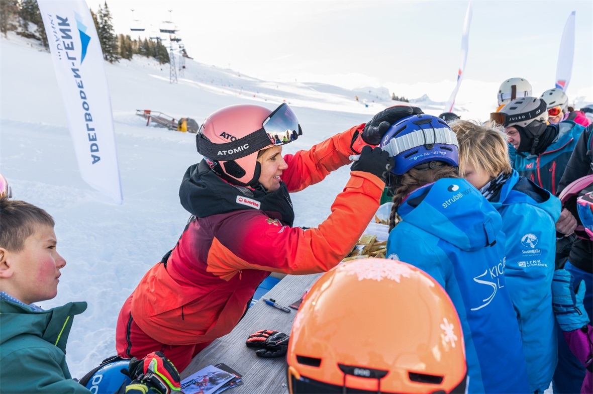 Die Zweitplatzierte der Weltcupabfahrt von Val d’Isère mass sich vergangenen Samstag für einmal nicht mit ihren Konkurrentinnen aus dem Weltcupzirkus, sondern fuhr mit JO-Kids der Skiclubs Lenk, Boltigen und Schangnau die permanente Rennstrecke an der oberen Wallegg am Lenker Betelberg hinunter.