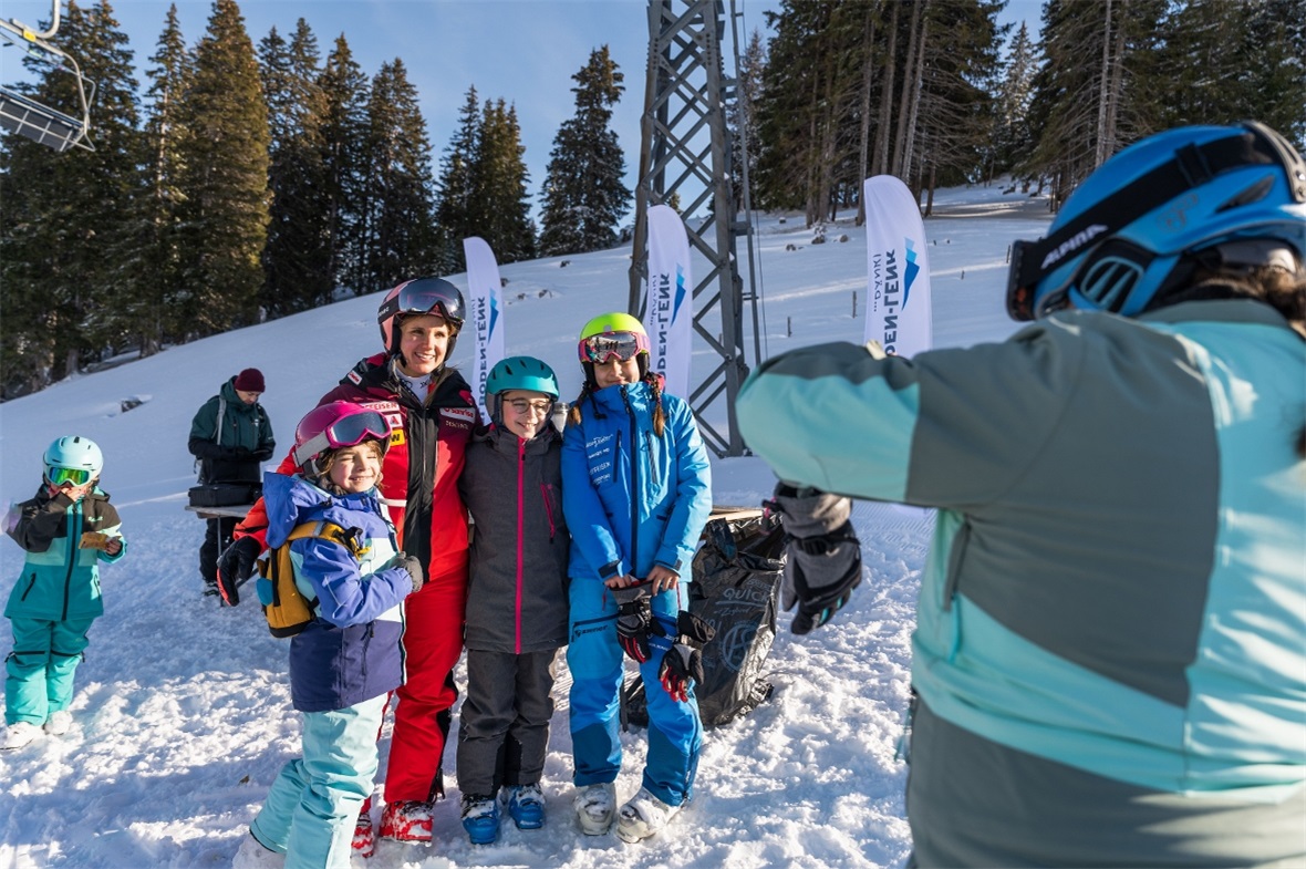 Der über Nacht gefallene Schnee musste vom Bergbahn-Team zuerst fein säuberlich präpariert werden – die Strecke war entsprechend weich – alles andere, als es sich die Speedfahrerin ansonsten von den vereisten Weltcup-Pisten gewohnt ist. Doch die Lenkerin liess sich davon nicht beirren, turnte mit den rund 60 Kids am Start vorgängig gut ein, während die Sonne die Rennstrecke an der oberen Wallegg je länger je mehr in strahlendes Licht tauchte.