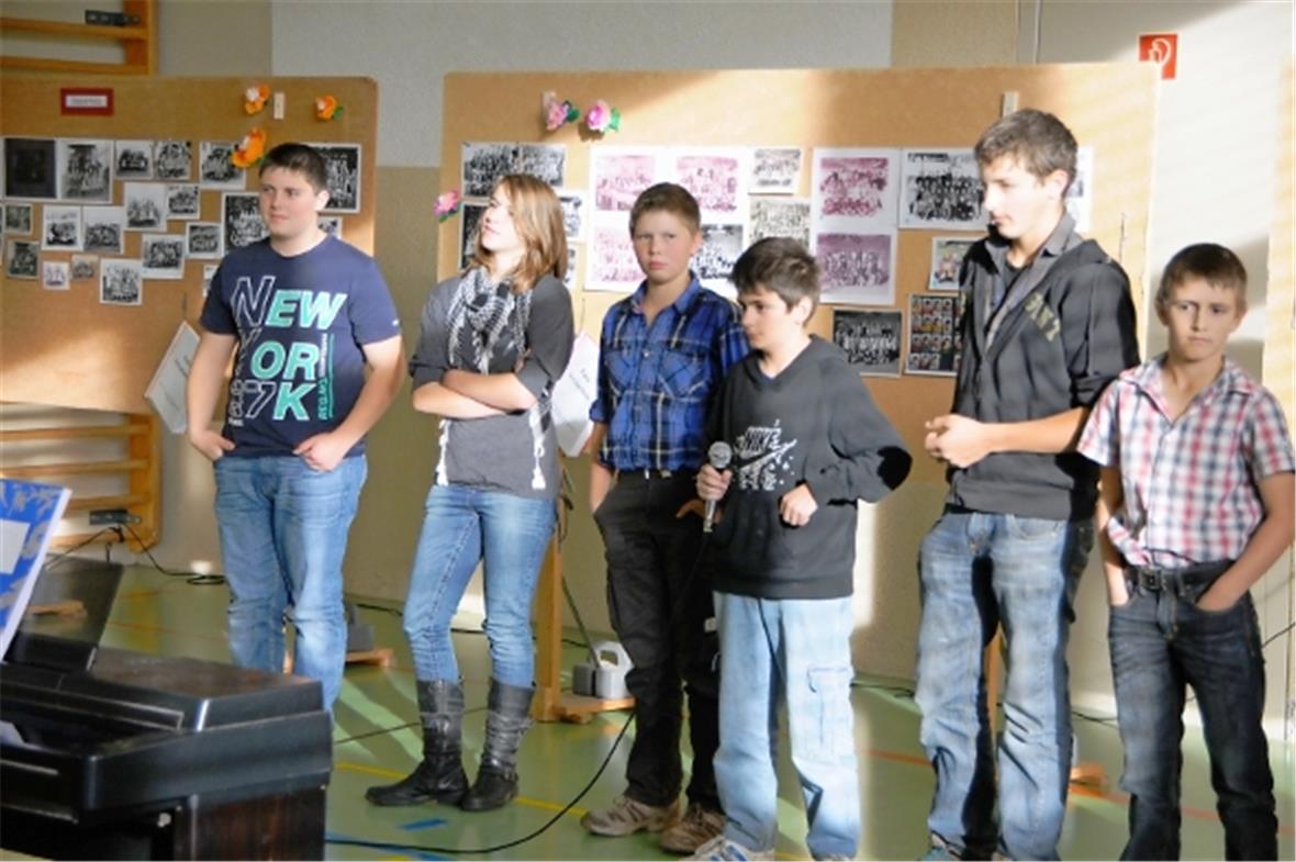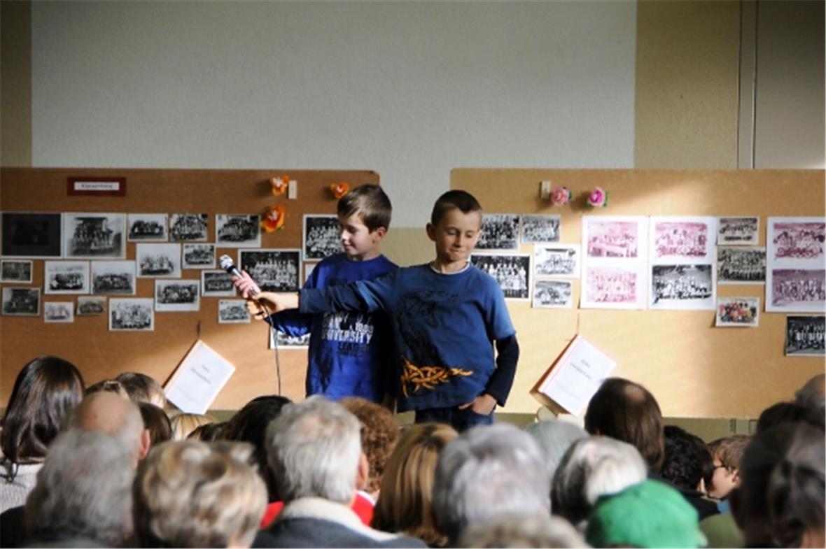 Nun waren wieder die Schüler an der Reihe, die Unterstufe lernte lustige Verse auswendig und präsentierten diese durchs Mikrofon den Besuchern, eine wunderbare Darbietung der jüngeren Schüler des alten Schulhauses.