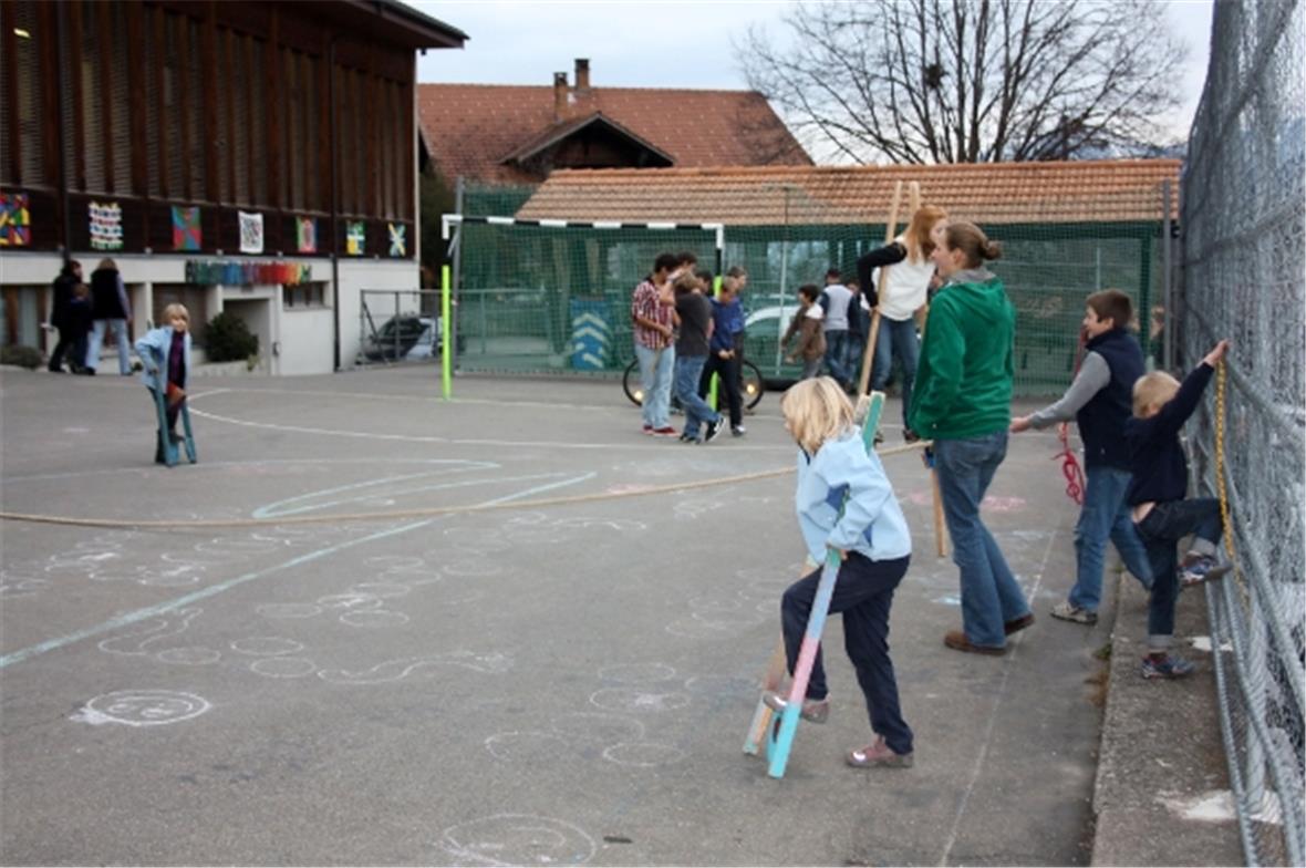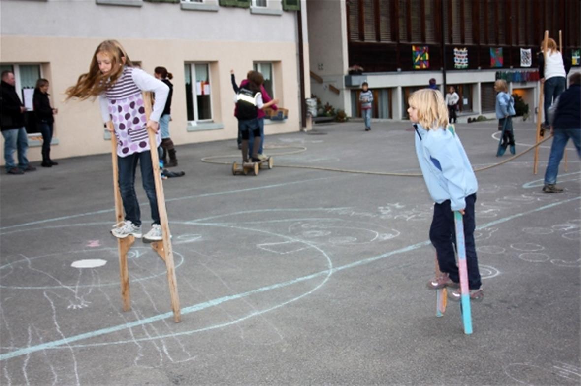 Der Elternverein präsentierte am Samstagnachmittag Spiele von früher, fabrizierten eine Holzkegelbahn, organisierten Stelzen, Armdrücken, Seilziehen etc. Dieses Angebot wurde von den Kindern rege benutzt. Die Ausstellung wurde bis am Sonntagabend gut besucht.