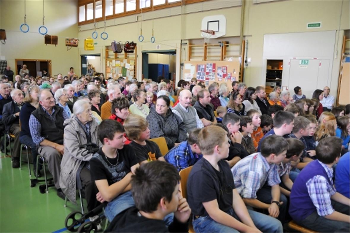 Die Turnhalle in Oberwil füllte sich am vergangenen Samstag mit vielen ehemaligen und jetzigen Schülern, mit Eltern oder einfach mit Freunden des Schulhauses. Um 14 Uhr eröffnete die Schule Oberwil die Vernissage mit einer schönen Gesangseinlage. Die Lieder regten zum Mitsingen an, «Es Buerebüebli», «Dert änät am Bärgli» oder «Fuchs du hast die Gast gestohlen» waren nur einige der bekannten Lieder. Nach dem Liedervortrag begrüsste Andy Gafner, Gemeindepräsident, erfreut die vielen Anwesenden. Er zitierte in seiner Rede Worte aus seinem alten Aufsatzbuch und einige Sätze aus dem Aufsatzheft seiner Mutter, welche doch das ein oder andere Mal ein Schmunzeln hervor lockten.