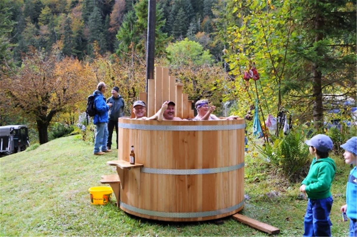 Marktstände mit «chüschtigem» Alpkäse, feinen Trockenwürsten, «gluschtigen» Bratwürsten, Tee und Gewürzen aus einheimischer Fabrikation, mit Informationen und Fotomaterial zum Grandhotel Weissenburgbad oder dem geplanten Hängebrückenbau erwarteten die Angereisten. «Bei uns kann auf einer Astgabel ein Seil herunter «geritten» werden, wie dies zu alten Zeiten Johann Feuz tat, um von der Morgetenbergstrasse über den Morgetenbach in die Leiternweide zu gelangen» informierte Hans Feuz. Im nächsten Jahr ist eine imposante Hängebrücke geplant, welche die Leiternweide von der Morgetenstrasse aus erschliesst. Zusammen mit den geplanten Wanderweg-Instandstellungen kann direkt vom Weissenburgbad via Leiternweide (über Leitern) über die Hängebrücke gewandert werden. Ein weiteres Highlight stellte der HotPot inkl. Badekleiderverleih dar, welcher rege benutzt wurde. Die Kinder erfreuten sich ab den herzigen Ponys, frechen Ziegen und lustigen Kälblein zum Streicheln.