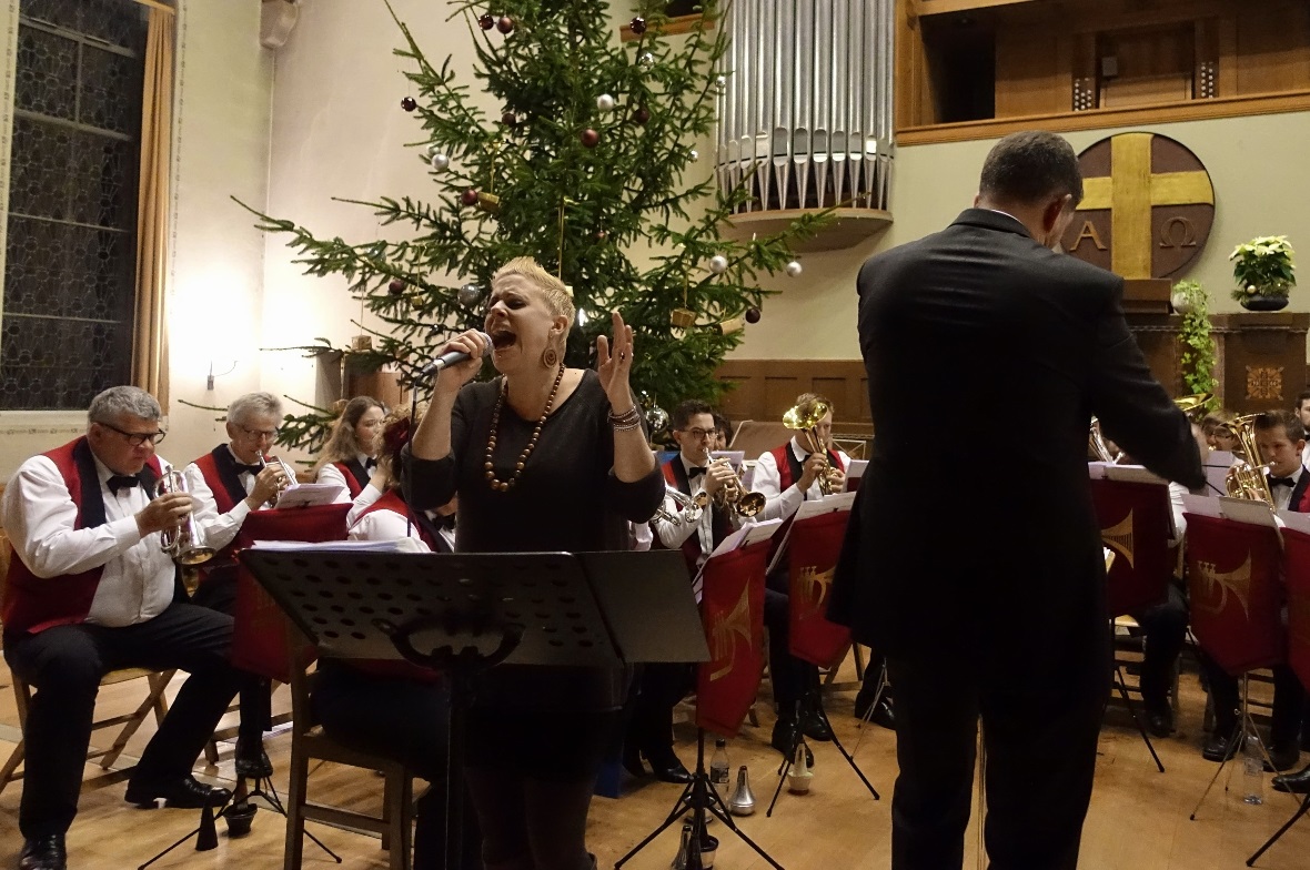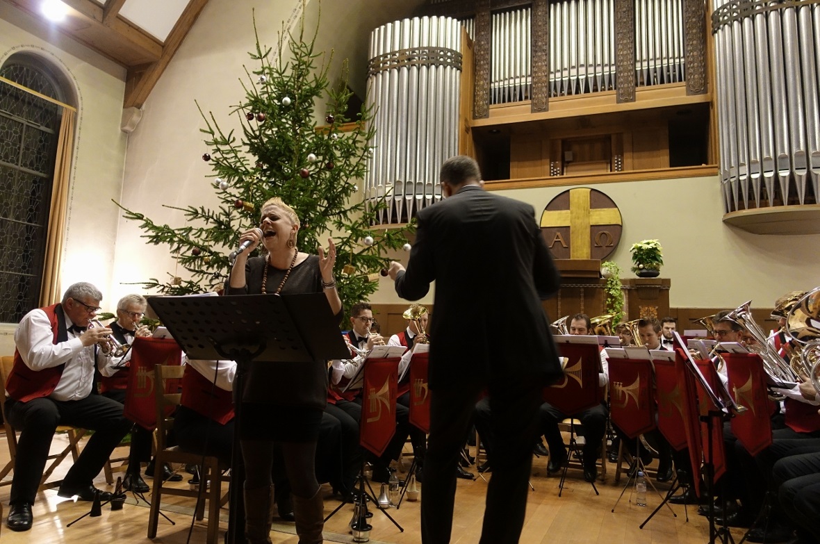 «Heuer dürfen wir eine Gastsängerin aus Wimmis in unseren Reihen willkommen heissen. Es handelt sich um eine junge Frau mit kräftiger Stimme, dynamisch und sehr ausdrucksstark. Sie sang von 1998 bis 2000 bei Gölä, anschliessend bei Florian Ast als Backgroundsängerin sowie bei ihrer Schwester Sandee mit», stellte Dirigent Charly von Grünigen die mitwirkende Barbara Meister-Moser vor. Mit dem stimmigen «Hallelujah» von Leonard Cohen als krönende Zugabe entliessen die Wimmiser Sängerin und das Simmentaler Brass-Ensemble das Publikum nach lang anhaltendem Applaus in die Spiezer Nebelnacht hinaus.