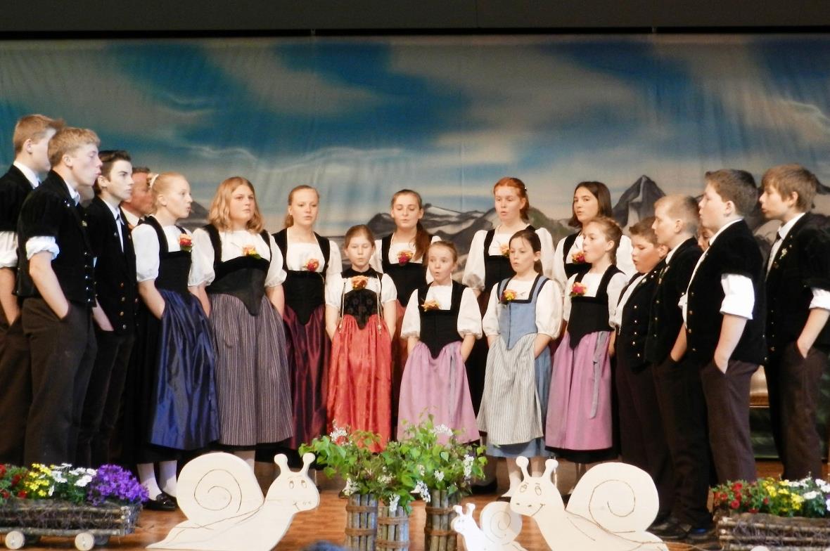 Der Gesamtchor, bestehend aus der Jungjodlergruppe Lenk-Matten-St. Stephan, dem Kinderjodlerchörli Saanenland und der Schwyzerörgeli-Gruppe präsentierte zum Abschluss das lüpfige «Dertäne am Bärgli».