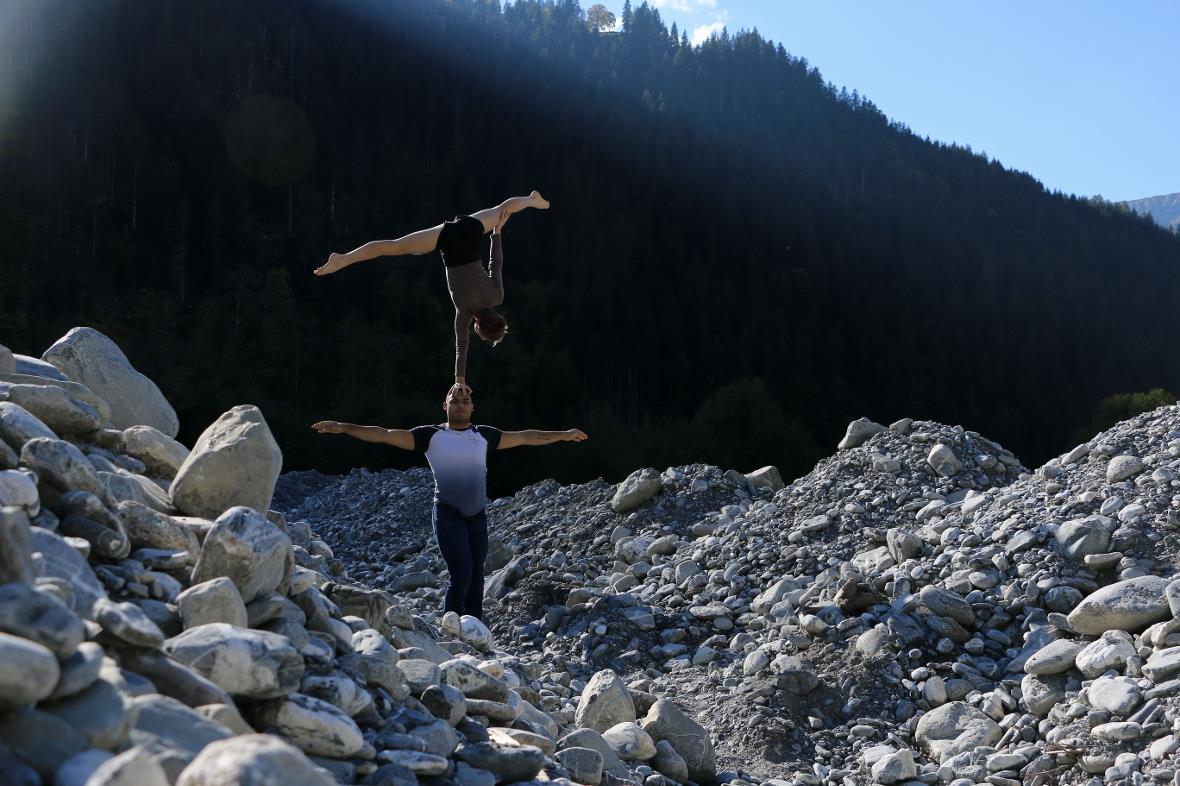 Mit ihrem Partner Michael hat sie in ihrer Disziplin Hand-auf-Hand schon viele Fortschritte gemacht und sie wollen auch nach der Ausbildung weiter zusammenarbeiten und auftreten. «Statt nur Handstände auf dem Boden zu machen, balanciere ich nun auf einer Hand auf dem Kopf oder der Hand meines Partners oder mache Saltos, bei denen er mich in die Luft wirft und wieder auffängt.» Auch menschlich verstehen sich die beiden sehr gut und so hat Michael, der ursprünglich aus London stammt, Joëlle für eine Woche in die Schweiz begleitet. Ein gemeinsamer Gastauftritt am Getu-Cup in Gstaad fiel beinahe ins Wasser, nachdem der 22-Jährige mit dem Velo gestürzt war. Doch trotz seiner Schulterverletzung trainierten sie weiter und stellten kurzerhand den einstudierten Ablauf so um, dass Joëlle nur auf Michaels rechter Seite balanciert.