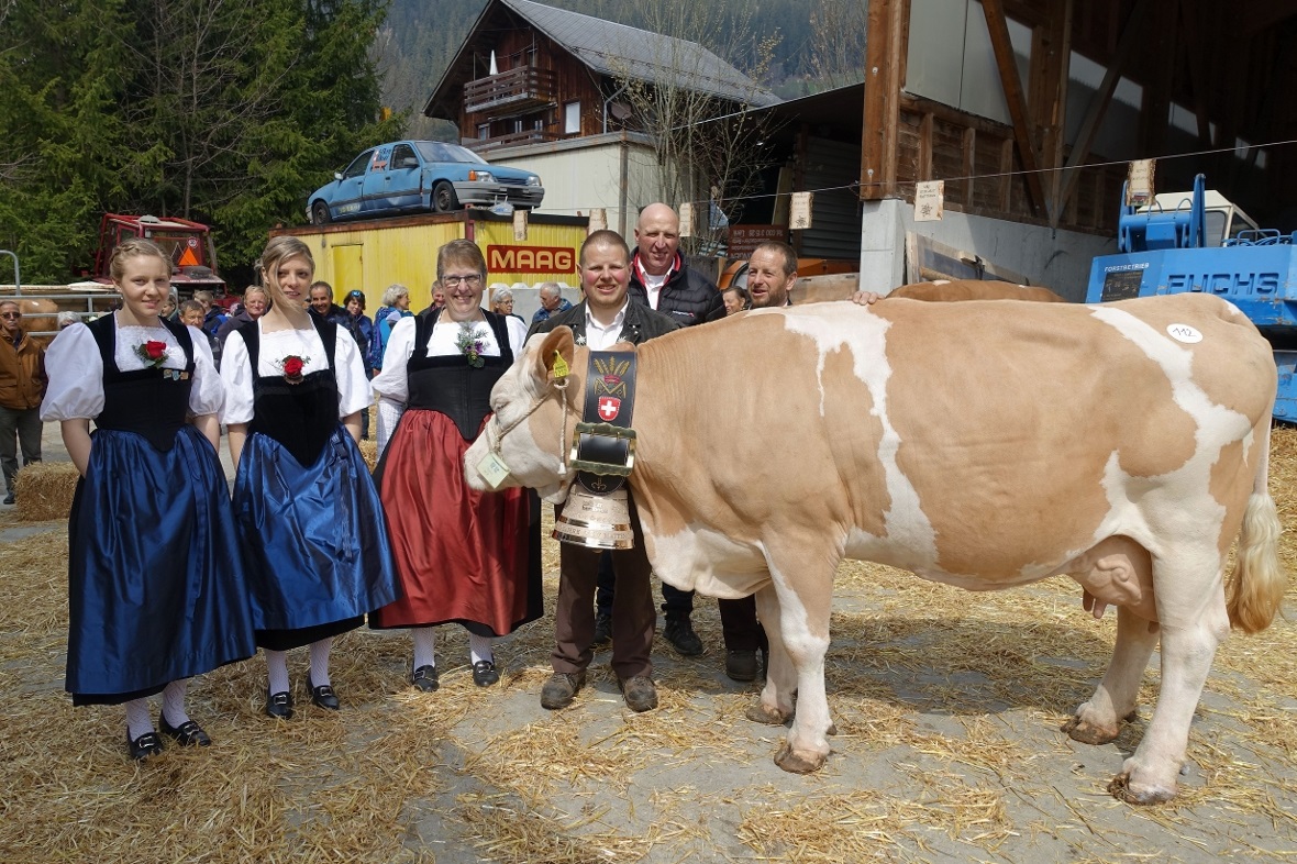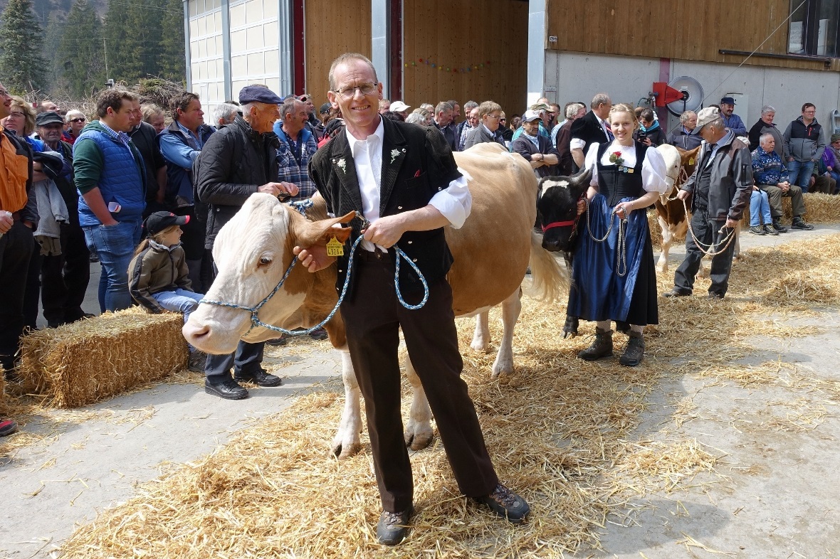 Auch der Präsident des Berner Bauernverbandes, Grossrat Hans Jörg Rüegsegger aus Riggisberg, war vom Festplatz und dem gepflegten Vieh beeindruckt. Und Nationalrat Erich von Siebenthal liess in seiner sympathischen Grussbotschaft einmal mehr durchblicken, dass ihm die Berglandwirtschaft sehr am Herzen liegt. Beim letzten Höhepunkt blieben die zulässigen Tiere im Ring und Experte erkor unter dem rhythmischen Klatschen der Zuschauer per Handschlag die SF-Kuh «Tamara» aus dem Stall von Rolf Tritten zur Platzmiss. Die beiden Kuh-Experten Daniel Trachsel aus Lauenen und Andreas Brügger aus Erlenbach gratulierten denn auch allen Züchtern für die ausgestellten Tiere und lobten die gute Qualität.