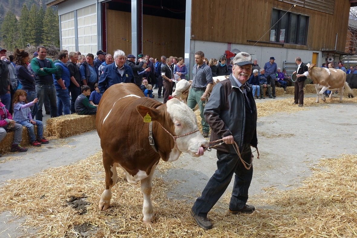 Die Präsentation der Stiere wurde durch den Experten Hanspeter Ritter aus Kandergrund durchgeführt. Der imposante fünfjährige Simmentaler Muni Veru beeindruckte unter anderem mit seiner Masse und gleichzeitig seiner Gutmütigkeit.