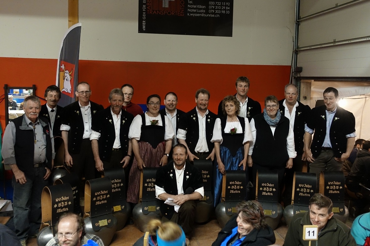 Am 13. April feierte der Viehzuchtverein Matten (VZV) anlässlich der Jubiläumsschau sein 100-jähriges Bestehen. 18 Gründungsmitglieder haben die VZG Matten im Jahre 1919 ins Leben gerufen. Hundert Jahre später besteht die VZV aus dreizehn Mitgliedern, welche mit viel Engagement und grosser Unterstützung ihrer Familien eine würdige Jubiläumsschau auf die Beine zu stellen wussten.