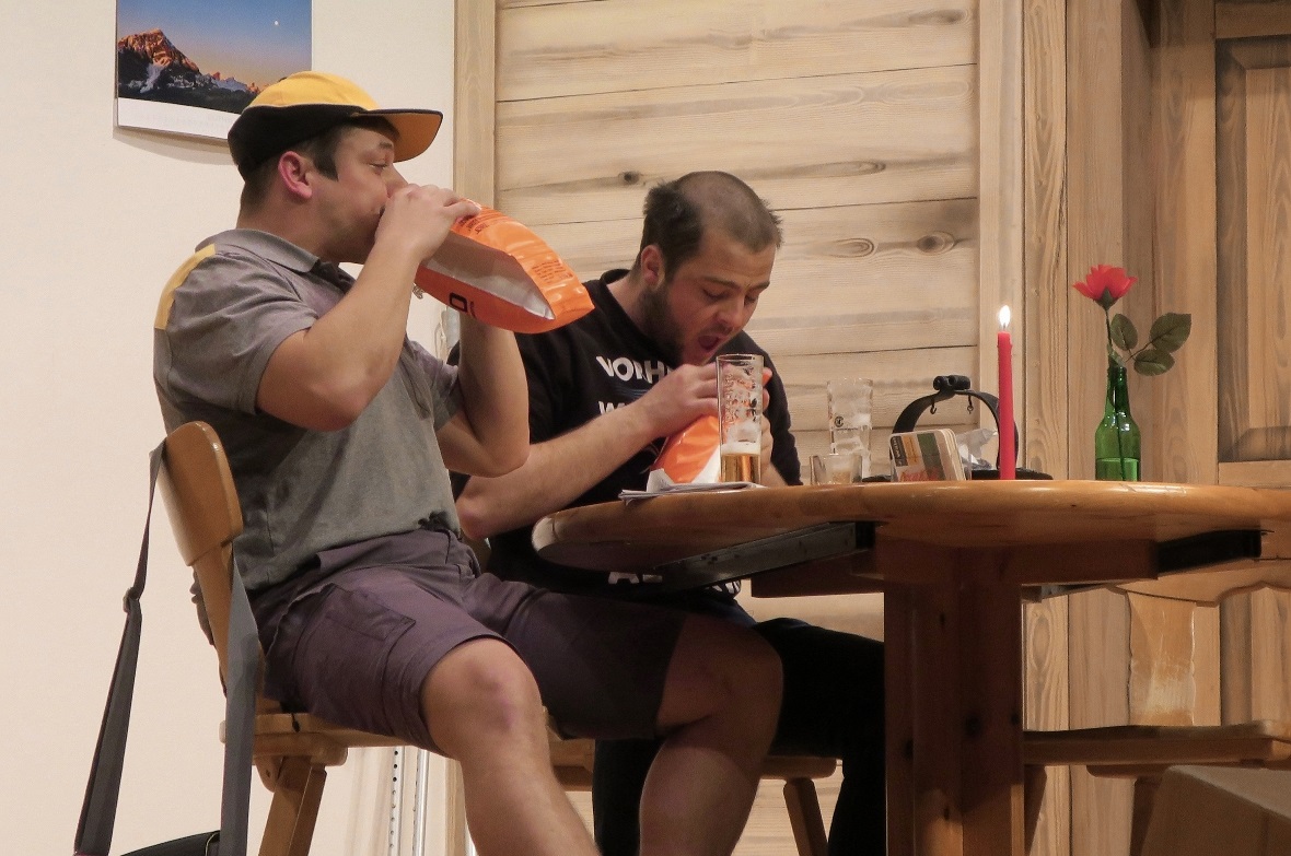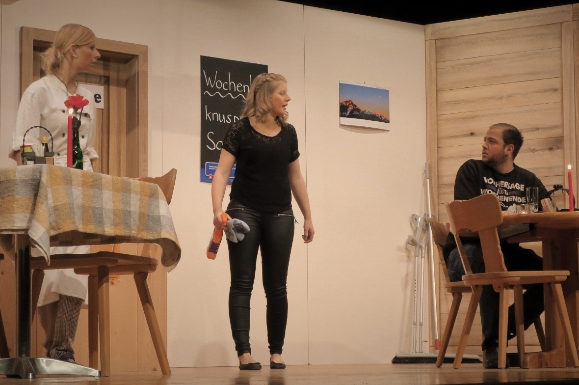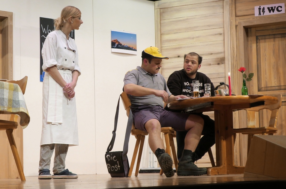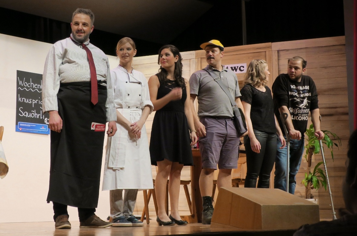Neugierige Pösteler, geheimnisvolle Gäste, nächtliche Zwischenfälle und himmlisches Essen: Die Zutaten für einen unterhaltsamen Theaterabend wurden flott gemischt und heiss serviert. Ein Hoch auf die Darstellerinnen und Darsteller – oder wie Fippel und Kobi treffend meinten: «Na zdorov’ye»! Für das Tüpfelchen auf dem «i» und eine reibungslose Darbietung sorgten hinter und unter den Kulissen Monika Müller (Maske), Michael «Gully» Gerber (Souffleur) und Mathias Eggen (Regie). Am Ende war der Theatergruppe ein langer Applaus beschieden und noch als der Vorhang fiel, tupften sich einige im Publikum eine Lach-Träne vom Gesicht.