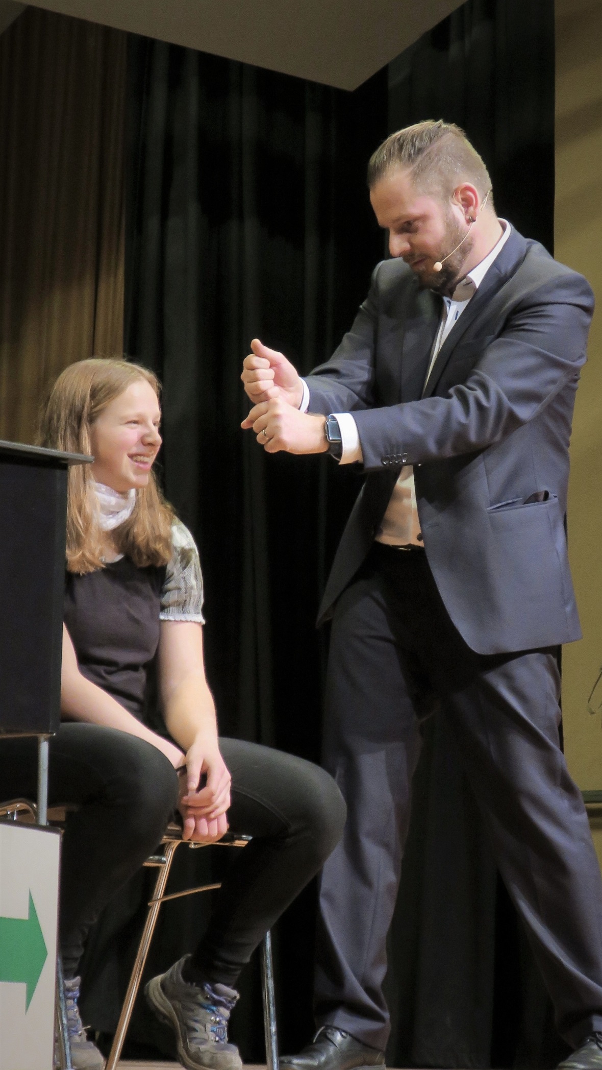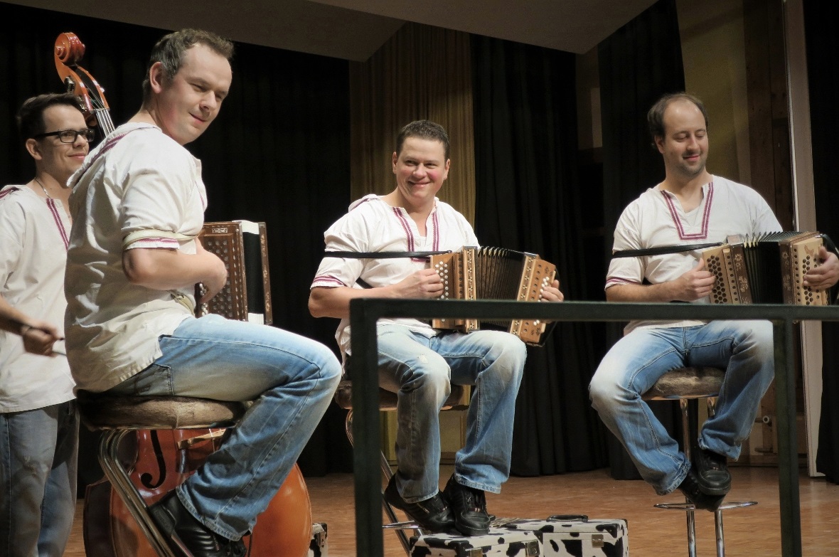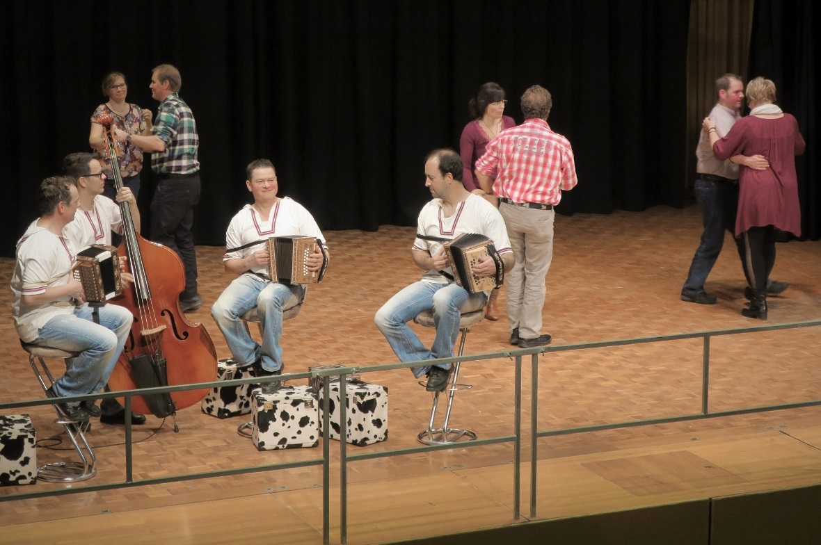 Im Anschluss überreichte der Präsident des Skiclubs, Hörbi Rösti, den Mitwirkenden als Dank je einen Geschenkkorb und lobte ihre Leistung. Seine Schlussworte ergänzte er um Neujahrswünsche für das Publikum und ein herzliches «Merci» an alle Helferinnen und Helfer, welche den gelungenen Abend erst ermöglichten. Die Kulisse war bereits geräumt, als auf der Bühne das Schwyzerörgeliquartett «Poz-Blitz» aus Meiringen zum Tanz bat – vier «gmögegi Jungs», die nicht zum ersten Mal zu diesem Anlass aufspielten. Die Gelegenheit liessen sich viele Anwesende nicht entgehen und so bewegten sich bald einige Paare im Fox zur lüpfigen Musik. Und wem das noch nicht genug war, den erwartete Ricky Siebers Magic Comedy Show. Der wortgewandte Solothurner verzauberte die Anwesenden mit seinen Tricks und sorgte für viele Lacher. Die Show bot solide Unterhaltung und es ergab sich für die eine oder den anderen aus dem Publikum gar die Gelegenheit, als Ad-hoc-Assistierende mitzuwirken. Nach zwei Zugaben verabschiedete sich Ricky und die flotten Meiringer unterhielten die Anwesenden bis zu später Stunde. Und wer nun glaubt, der Abend sei nur etwas für Einheimische gewesen, liegt falsch: Im Publikum sassen Gäste aus dem fernen Brandenburg (D) und freuten sich ob dem gelungenen Anlass ebenfalls.