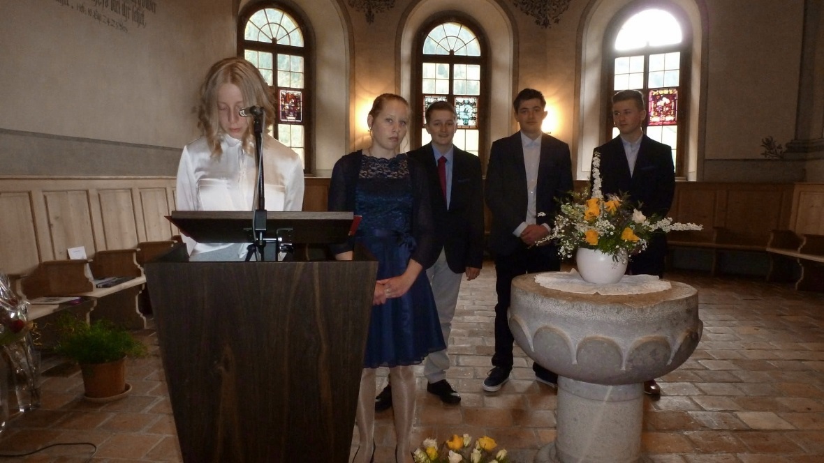 Am Auffahrtsdonnerstag, 13. Mai 2021 wurden in der reformierten Kirche St. Stephan acht Jugendliche konfirmiert. Die Konfirmanden gestalteten den unterhaltsamen und kurzweiligen Gottesdienst selbst. Dabei erfuhren die Angehörigen so einiges über die Konfirmationszeit und die Konfirmanden. Die engagierten und unternehmensfreudigen Jugendlichen erarbeiteten die Begrüssung, die Gebete, das Programmheft und weitere Beiträge.