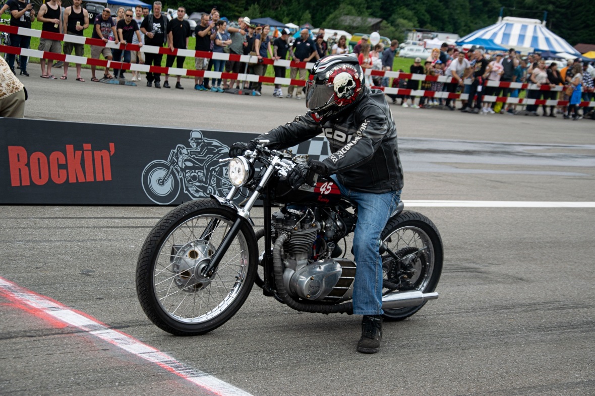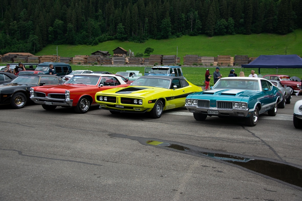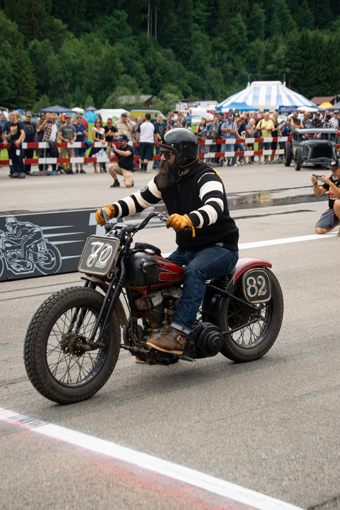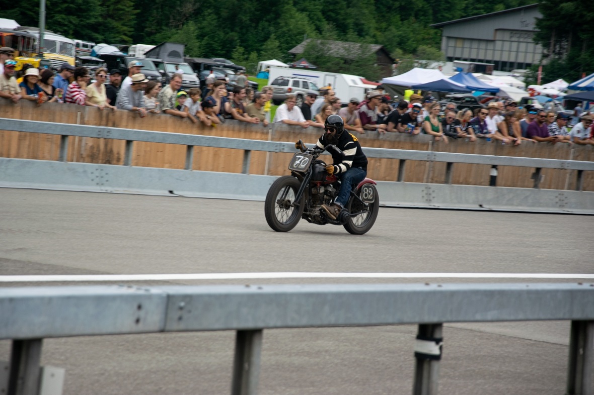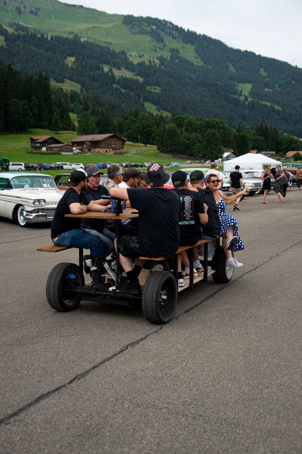 «Ich war letztes Jahr schon da, jetzt habe ich die Jungs mitgenommen», sagte Tom vom Club Silberfischla aus Pforzheim (DE). «Sechs Männer und sechs Autos, darunter ein Ford 1936, ein Pick-up, ein Chevrolet und ein Nash Ambassador. Die Location ist schön, die Leute sind mega nett und cool!» Zwei Frauen mit aufgesetzten Haaren und in geblümten Röcken sassen auf Campingstühlen in der Hotrod- und Customzone. «Wir sind nur als Dekoration da!», schmunzelten die beiden. Sie waren in einem seltenen Coupé mit Baujahr 1930 angerollt, der Hotrod gehörte Michi aus Menziken (AG): «Es ist das erste Fordmodell mit einem V8-Motor, im Sommer wird es innen unglaublich heiss. Ich bin zum ersten Mal da, es ist super, gute Autos, gute Musik, guter Rennbetrieb!»
