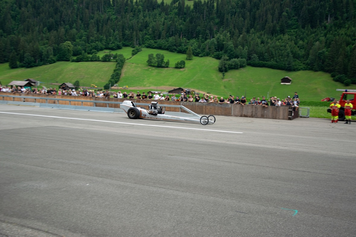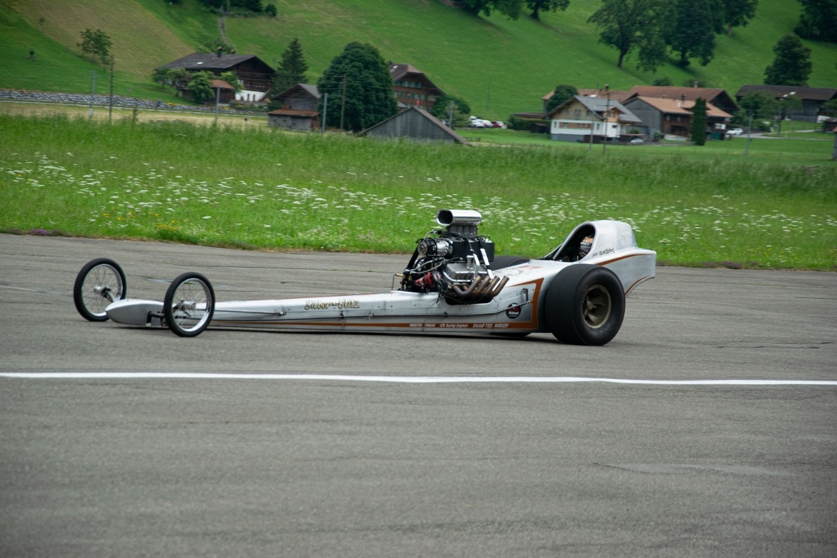Ein Höhepunkt waren die zwei Dragster, die mit heulendem Motor beschleunigten, um sogleich wieder abzubremsen. «Ich kaufte das Fahrzeug 2018 in Massachusetts, gegen Barzahlung, alles ist Original, hergestellt von den Lodge Brothers. Die Ventile sind anno 1955, die andere Technik von 1960, mein Anzug und die Gasmaske ebenfalls», erzählte James Rechsteiner, welcher in der Saison bis zu fünf Viertel-Meilen-Rennen in Europa fährt.
