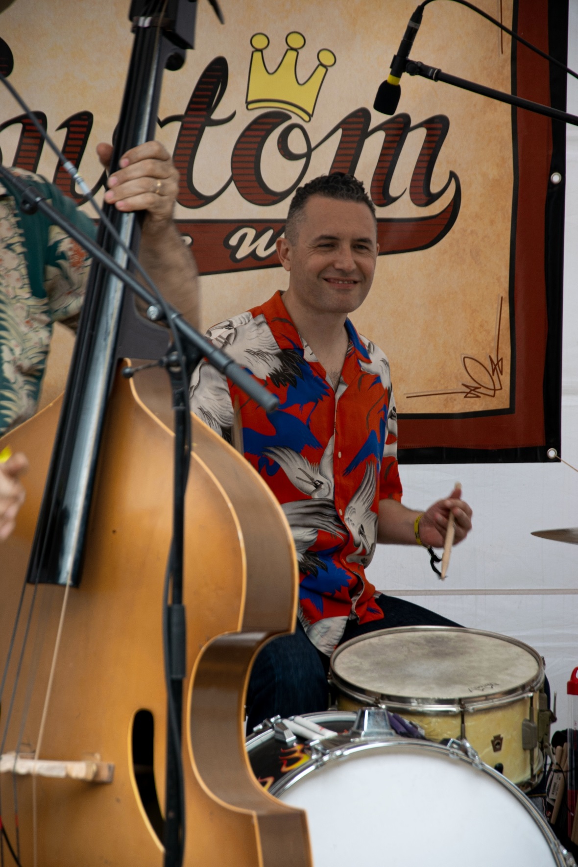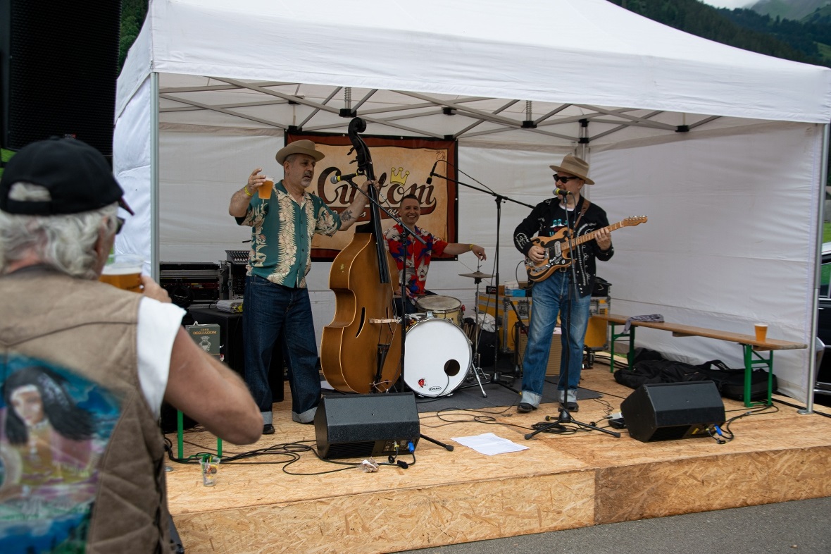 Christina und Thomas aus dem Kanton Solothurn genossen den Nachmittag vor ihrem deutschen Campingwagen der Marke Fahti mit Baujahr 66, ganz aus Polyester mit runden Fenstern. «Das war dazumal modern, alles ist Original.» Gezogen wird der Campingwagen von ihrem roten Jaguar 1961 MK2. «Wir sind aber vor allem wegen der Bands da, weniger wegen den Autos», lächelten die beiden. Auch für Festivalgeneral und Schlagzeuger Paul Burkhalter ist der Sound essenziell: «Damals, als junger Teenager, hat mich die Musik wie ein Fahrzeug gerammt, es ist der Rhythmus und der Beat.»