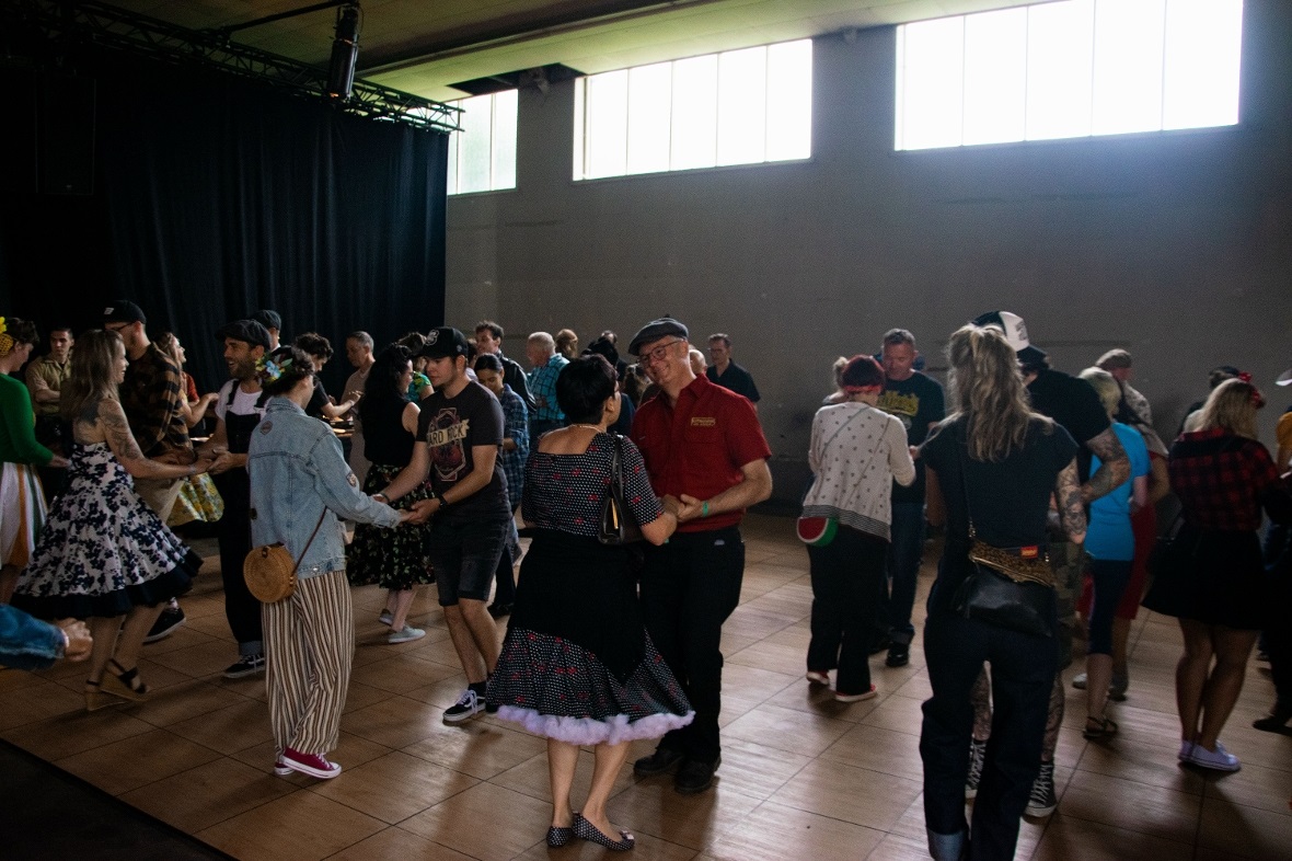 Am Samstag, 1. Juli, kurz nach Mittag kamen immer noch Oldtimer angefahren, vor der Kasse bildete sich eine Schlange. Der Eintritt kam einer Zeitreise zugleich: eine überwältigende Menge und Vielfalt an alten Fahrzeugen, Stände mit Vintagekleidung, Hüten, Accessoires und Flohmarktartikeln. Tattoos wurden gestochen und beim Coiffeur wurde eine Kundin toupiert, sie bekam eine Rockabilly-Frisur mit besonders viel Volumen verpasst. «Wir bieten ein Gesamtpaket an», erklärte Paul Burkhalter vom Verein Hangar Rockin’: «Ein in sich geschlossenes Bild, vom grafischen Design über die Musik zum Live-Radio und den Autos. Damals hatte alles mehr Stil und Qualität, das Geschirr, die Kleider, die Fahrzeuge, es war für die Ewigkeit gebaut! Ich finde es schlimm, dass heute fürs Fortwerfen produziert wird. Der Rockabilly Lebensstil ist wie eine Religion für mich.»