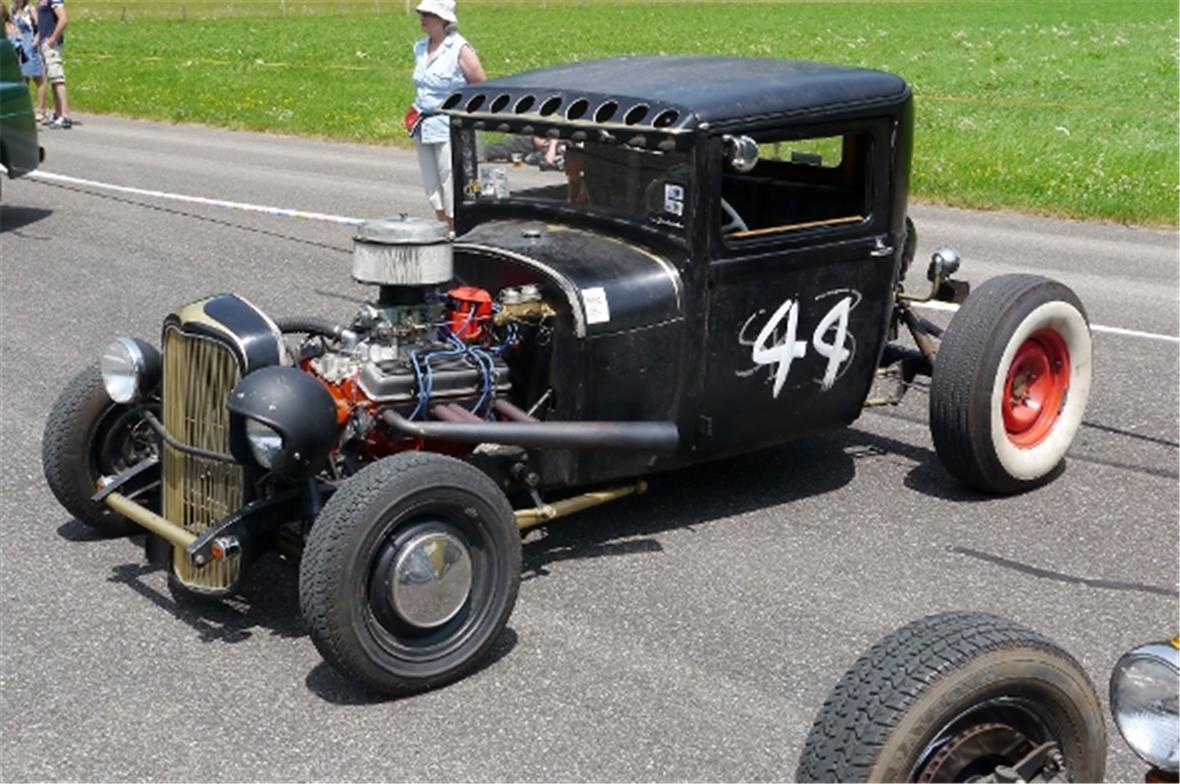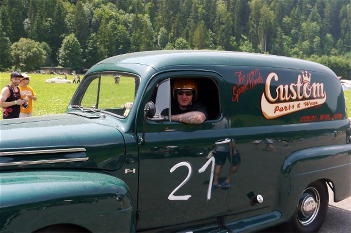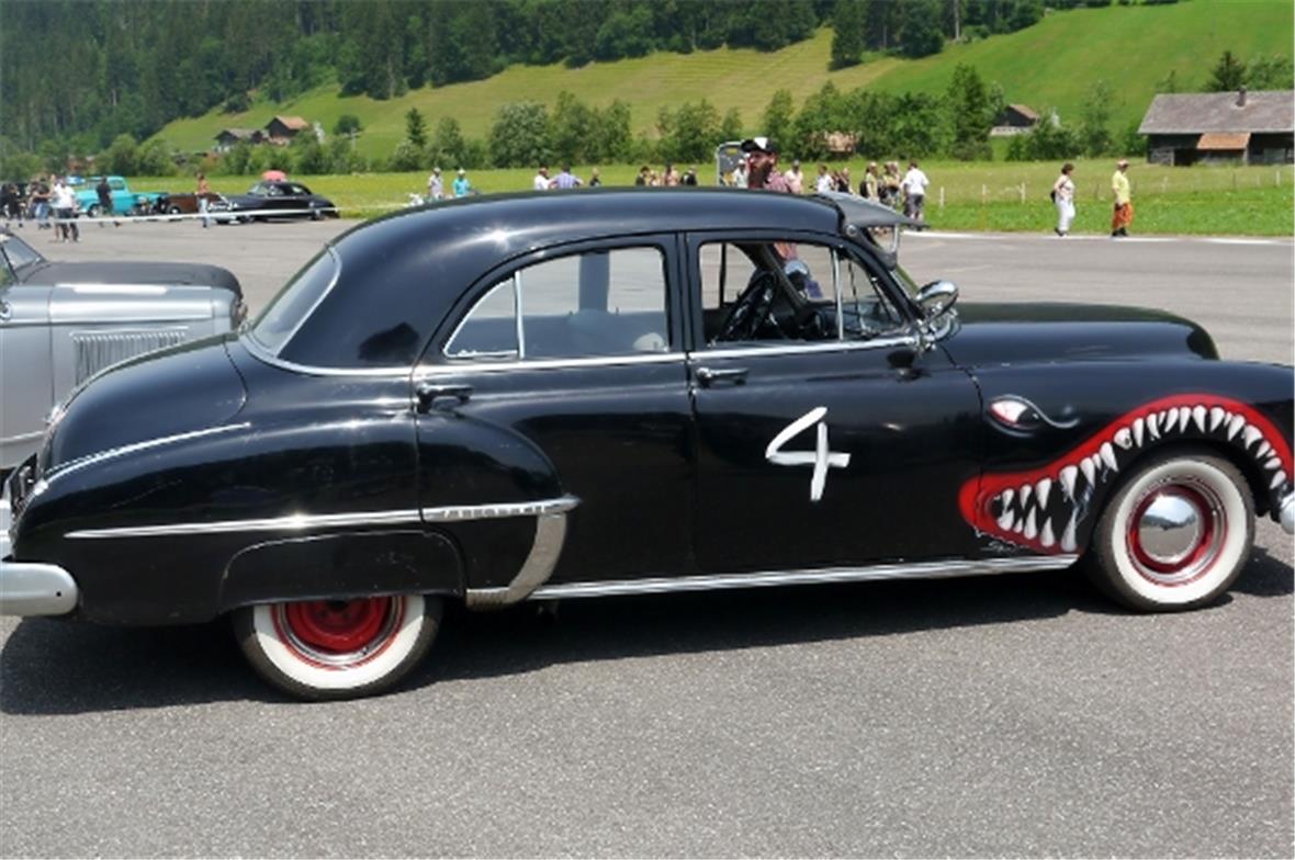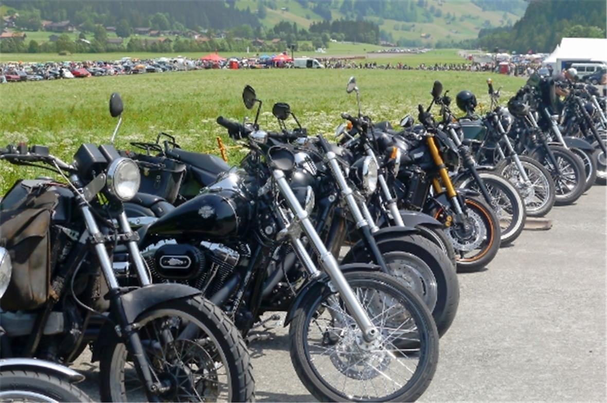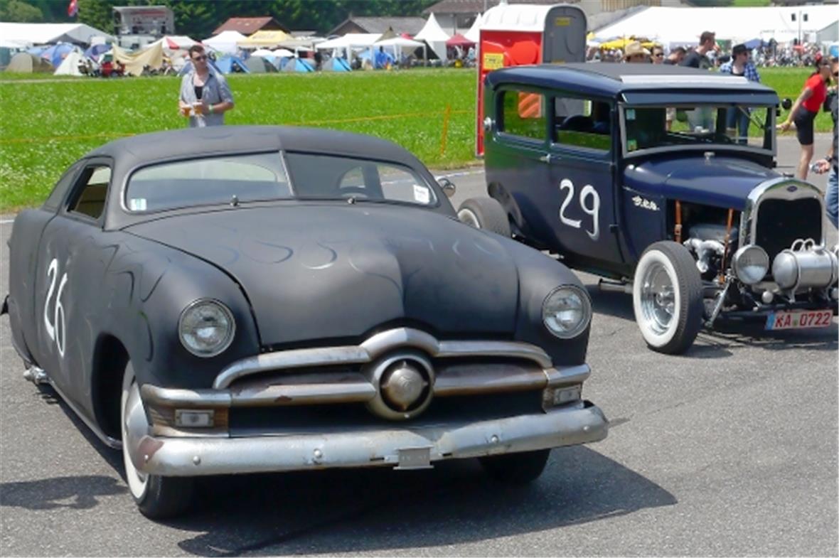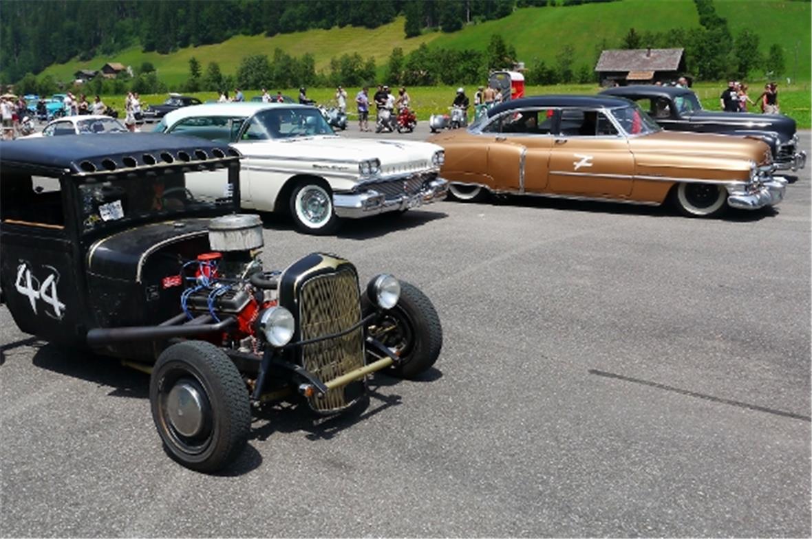 Am Samstag schon in der Morgenfrühe entstand der Jahrmarkt rund um das Oldtimer Rennen und die ersten Oldtimer versuchten auf der offenen Piste die Achtelmeile zu schaffen. Hier liess mal eine Bezinpumpe, dort gab ein Fallstromvergaser den Geist auf und gäbe es nicht eine ganze Menge hilfsbereiter Oldtimer Spezialisten unter den Besitzern, würde ein solches Treffen zum Chaos. Der Zusammenhalt unter den Leuten prägte das Fest. Man diskutierte, beriet sich und half Schäden zu bereinigen, schlenderte über den Markt und hörte sich die Rocker im Hangar an. Ein friedliches Fest, ein Treffen von Leuten aus aller Welt und das vor unserer wunderbaren Bergkulisse.