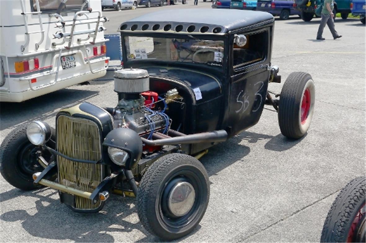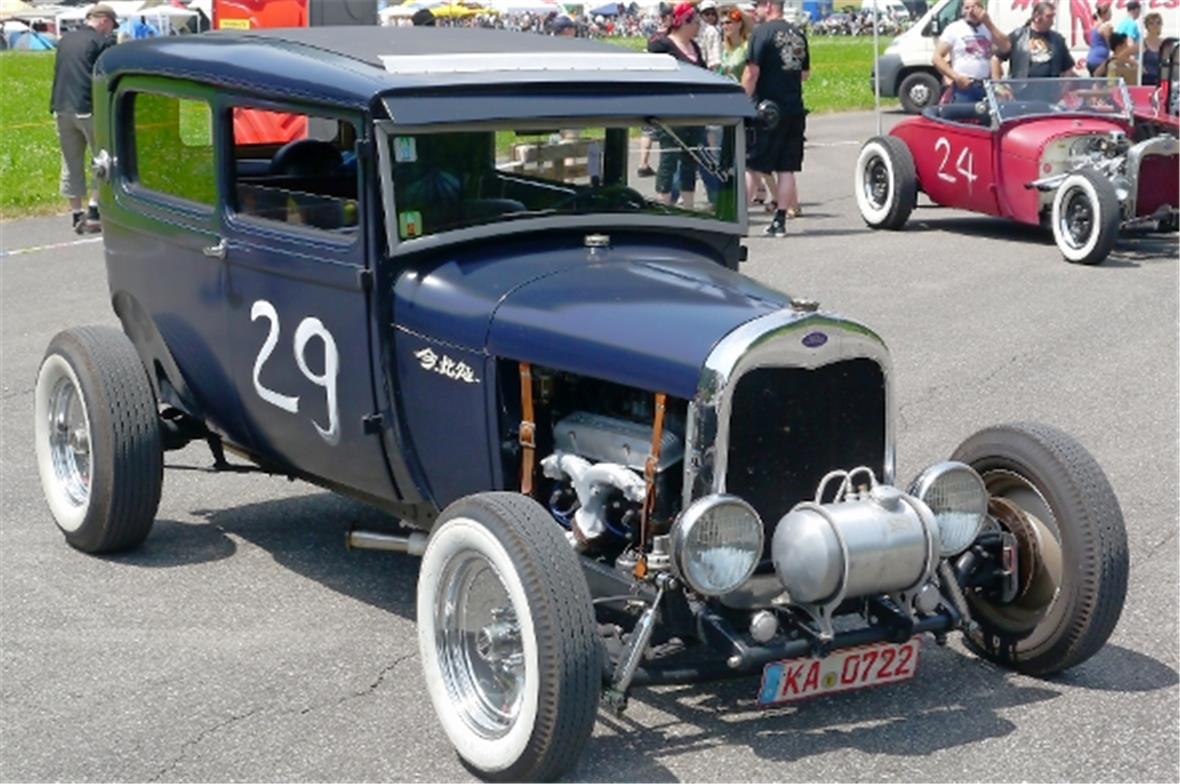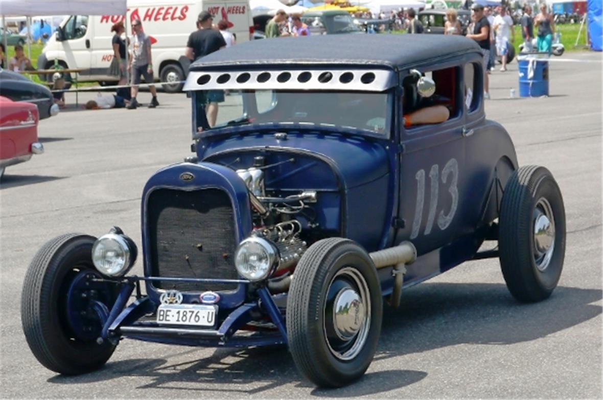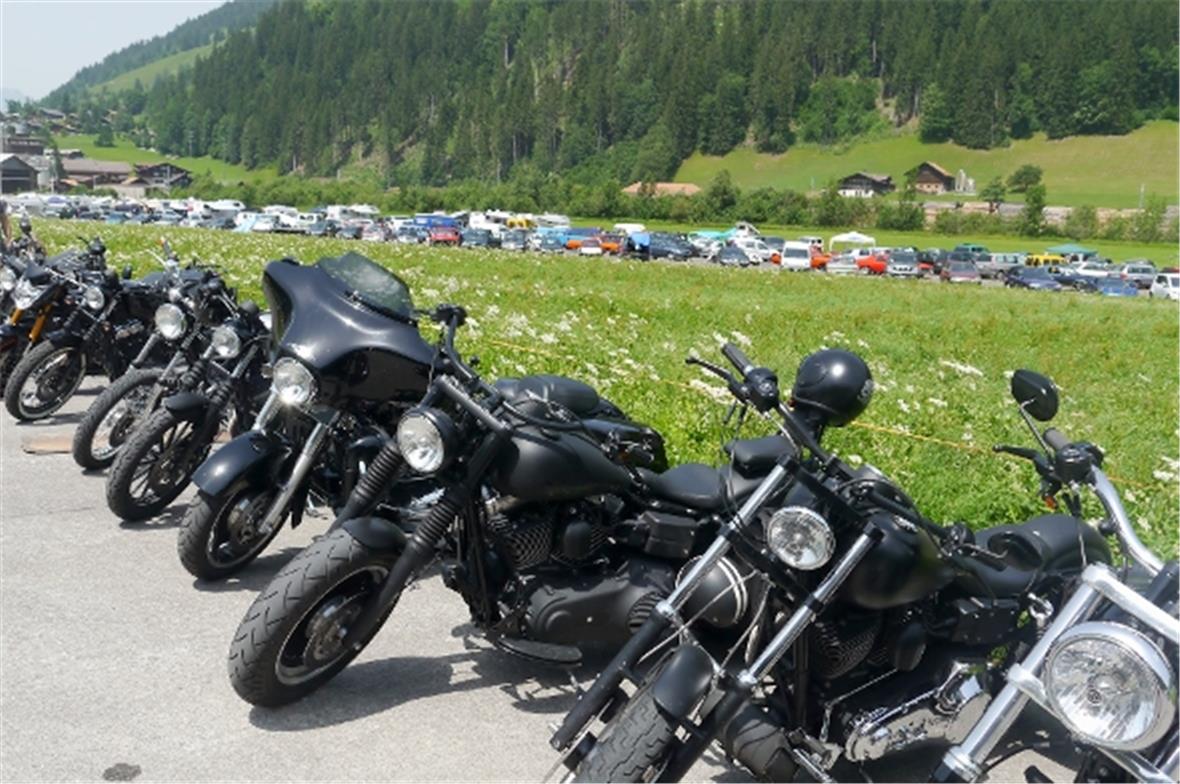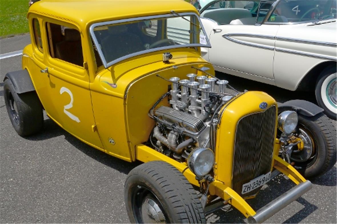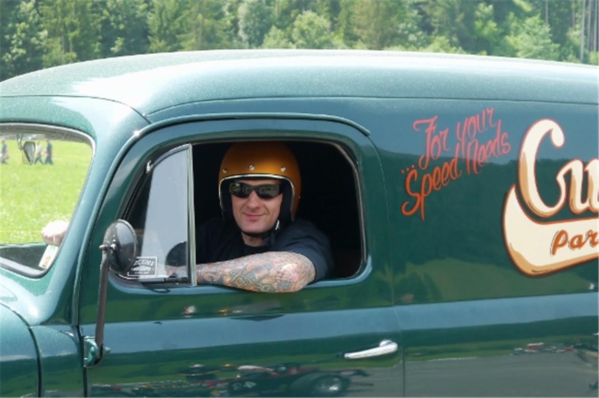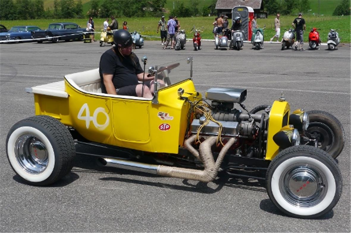 Am Samstag schon in der Morgenfrühe entstand der Jahrmarkt rund um das Oldtimer Rennen und die ersten Oldtimer versuchten auf der offenen Piste die Achtelmeile zu schaffen. Hier liess mal eine Bezinpumpe, dort gab ein Fallstromvergaser den Geist auf und gäbe es nicht eine ganze Menge hilfsbereiter Oldtimer Spezialisten unter den Besitzern, würde ein solches Treffen zum Chaos. Der Zusammenhalt unter den Leuten prägte das Fest. Man diskutierte, beriet sich und half Schäden zu bereinigen, schlenderte über den Markt und hörte sich die Rocker im Hangar an. Ein friedliches Fest, ein Treffen von Leuten aus aller Welt und das vor unserer wunderbaren Bergkulisse.